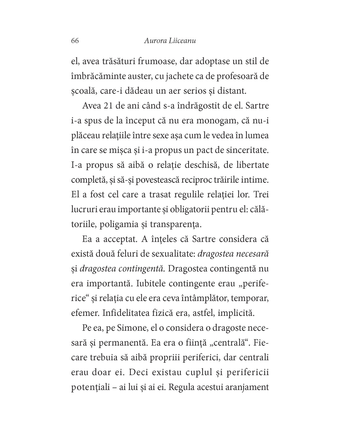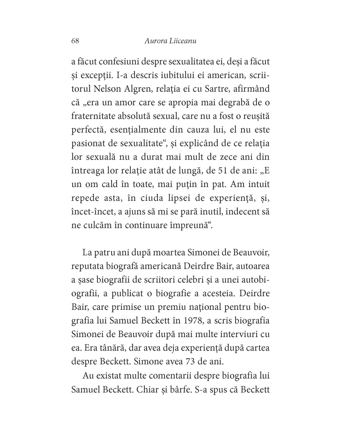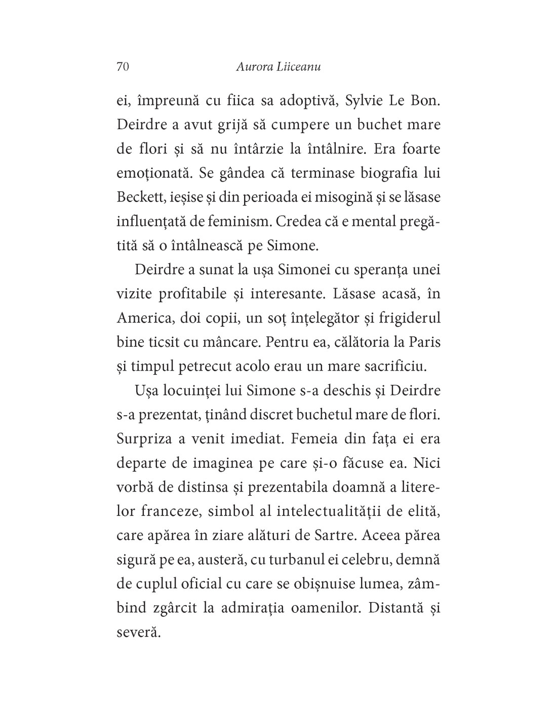 Aurora LIICEANU, doctor în psihologie, a lucrat în cercetare și a predat psihologie la diferite universități din București, dar și la UQAM (Canada) sau EHESS (Franța). În prezent este cercetător senior la Institutul de Filosofie și Psihologie „Constantin Rădulescu-Motru” din cadrul Academiei Române. De aceeași autoare, la Editura Polirom au mai apărut: Rănile memoriei. Nucșoara și rezistența din munți (2003, 2012), Prin perdea (2009, 2012), Rendez-vous cu lumea (2010, 2012), La taifas (2010, 2012, 2016, 2018), Viața nu-i croită după calapod (2011, 2019), Cuvinte încrucișate (2012, 2017), Supuse sau rebele. Două versiuni ale feminității (2013, 2019), Legături de sânge. Povestea Ioanei (2013), Soacre și nurori. La cine este cheia? (2014, 2018), Valurile, smintelile, păcatele. Psihologiile românilor (2015), Nici alb, nici negru. Radiografia unui sat românesc (1948-1998) (2015), Dragostea cea veche îți șoptește la ureche. Primele iubiri (2015, 2016, 2019), Ea și El. Biografia unei relații (2016, 2020), Madlena (2017), Putere și sânge. O aventură indiană (2018), Tânăra cu părul alb. Misterul Nabokov (2019), Așteptarea Penelopei (2019), Fără. Despre iubire, suferință și pierdere (2020), Sindromul Greta Garbo. Despre celebritate și anonimat (2020), Relații eșuate. Să nu te încurci niciodată cu un bărbat însurat (2020), Efectul de undă (2021), Totdeauna singură. Nefericiri paralele (2022), Travesti. Identități fluide (2022) și Dinastii dulci (2023).