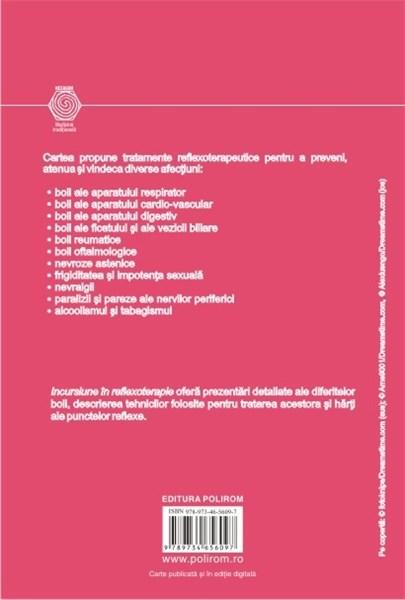 Incursiune in reflexoterapie ofera prezentari detaliate ale diferitelor boli, descrierea tehnicilor folosite pentru tratarea acestora si harti ale punctelor reflexe.