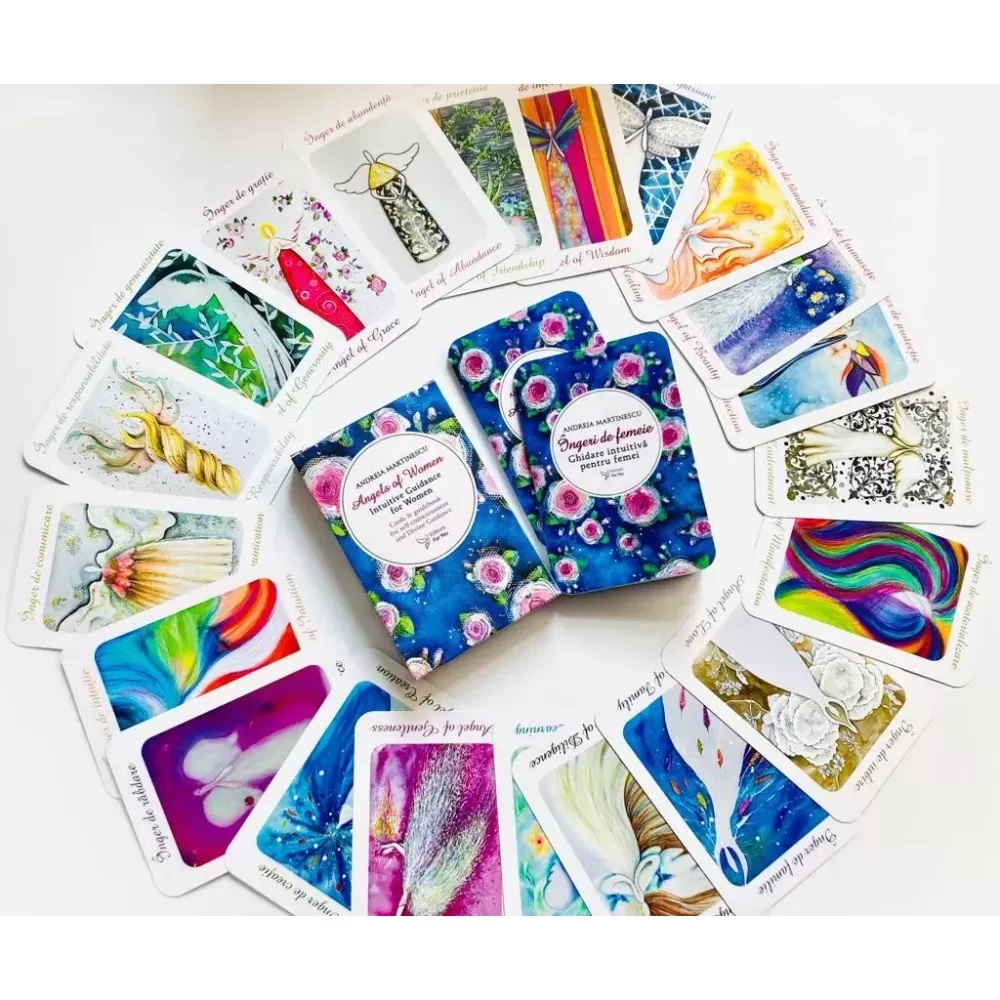 Cărţile-oracol „Îngeri de femeie” îşi pot găsi locul atât în dormitorul tău, cât şi în geantă, pentru a-ţi fi alături în călătoriile tale.