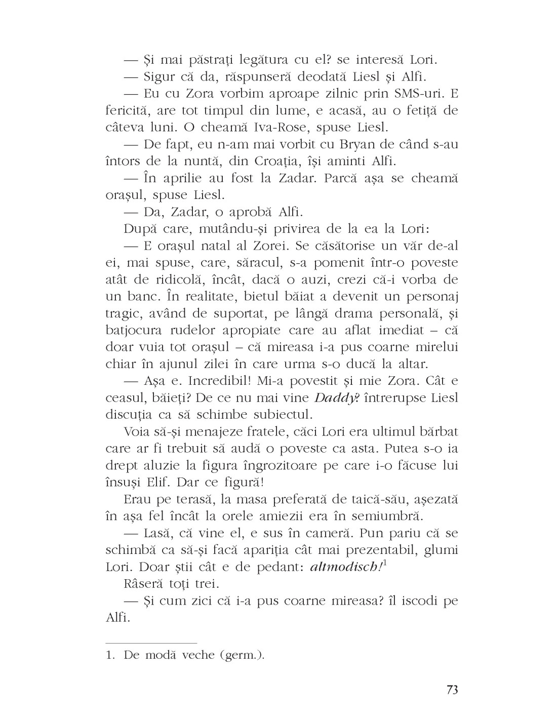 Printr-o continuitate sui-generis în literatura noastră, construită pe parcursul a trei romane, unul dintre personajele sale, Cezar, descendent din Otești, după mamă, un Grozescu devenit austriac, medic psihiatru la Viena, își trăiește acum senectutea între orașul de adopție și Arad, între îngrijorările paterne legate de destinul copiilor săi, Liesl și Lori, și propriile-i neliniști, care poartă un nume din trecut, Rujița, prima și neîmplinita iubire din adolescență.