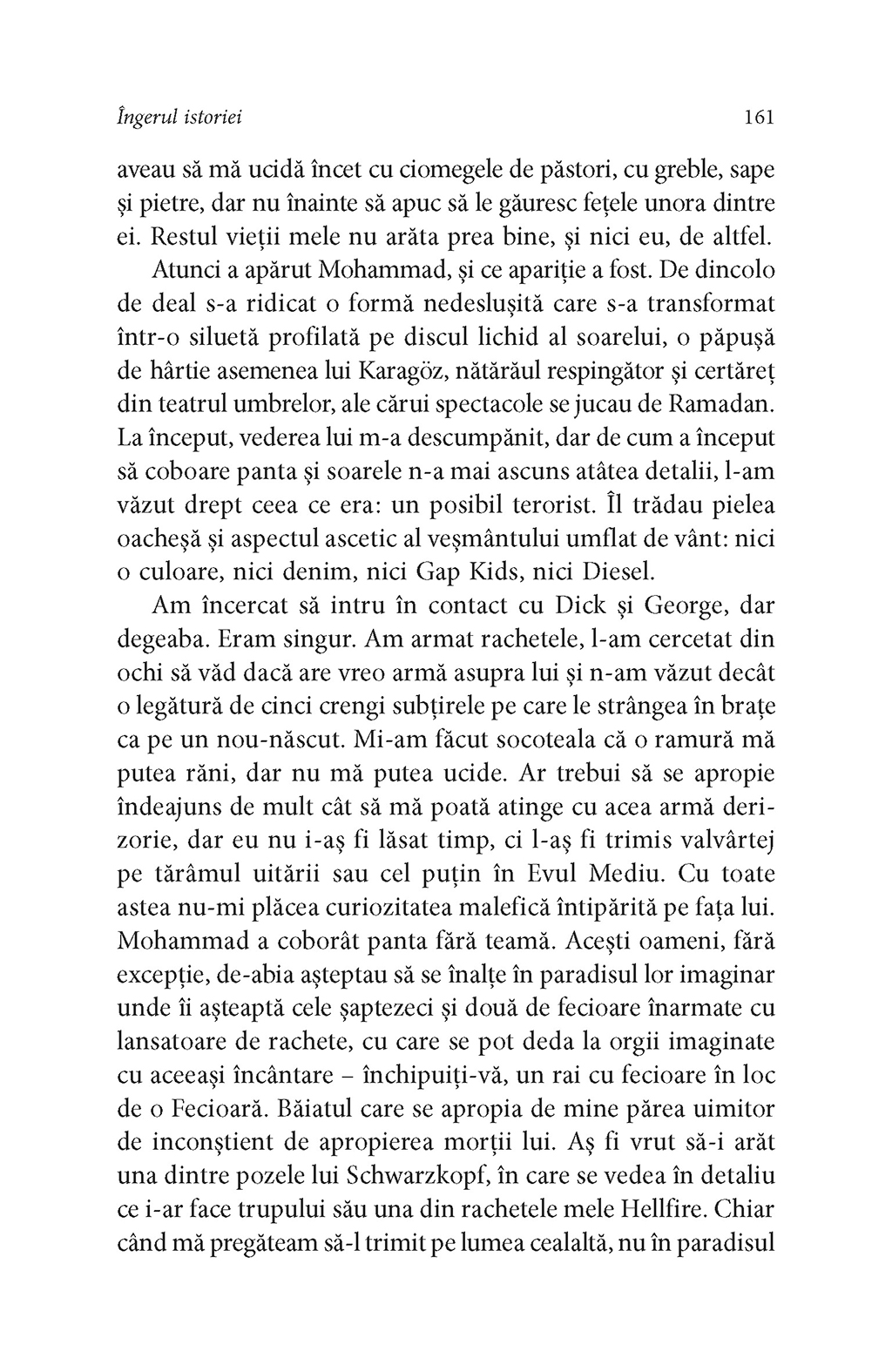 Îngerul istoriei spune povestea lui Iacob, un poet homosexual născut în Yemen care trăieşte în San Francisco. Romanul este construit în jurul nopţii petrecute în sala de aşteptare a unei clinici psihiatrice, o noapte în care Iacob rememorează episoade din viaţa sa, de la copilăria petrecută alături de mamă într-un bordel din Egipt la adolescenţa libaneză sub protecţia tatălui bogat şi la viaţa de adult homosexual în anii epidemiei de SIDA din San Francisco. Însoţit la tot pasul de prezenţa stăruitoare, ispititoare a Satanei, care-l îmbie să-şi amintească trecutul plin de suferinţă, şi de posaca, glaciala Moarte, care-l sileşte să uite şi să renunţe la viaţă, Iacob este de asemenea luat în grijă de cei paisprezece sfinţi protectori chemaţi de oameni în timpul marilor epidemii. Scris cu multă imaginaţie, Îngerul istoriei este povestea captivantă, profundă şi plină de umor a luptei dintre memorie şi uitare.