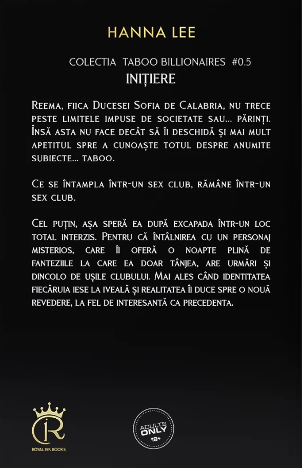 Cel puțin, așa speră ea după excapada într-un loc total interzis. Pentru că întâlnirea cu un personaj misterios, care îi oferă o noapte plină de fanteziile la care ea doar tânjea, are urmări și dincolo de ușile clubului. Mai ales când identitatea fiecăruia iese la iveală și realitatea îi duce spre o nouă revedere, la fel de interesantă ca precedenta.