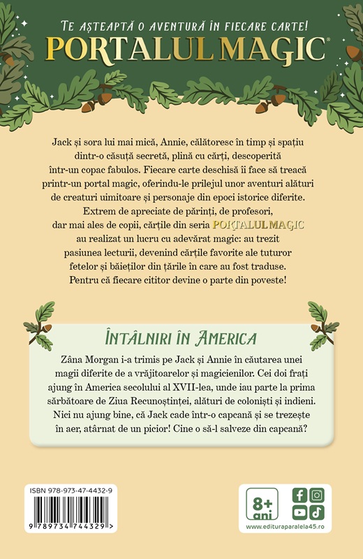Zâna Morgan i-a trimis pe Jack și Annie în căutarea unei magii diferite de a vrăjitoarelor și magicienilor. Cei doi frați ajung în America secolului al XVII-lea, unde iau parte la prima sărbătoare de Ziua Recunoștinței, alături de coloniști și indieni. Nici nu ajung bine că Jack cade într-o capcană și se trezește în aer, atârnat de un picior! Cine o să-l salveze din capcană?