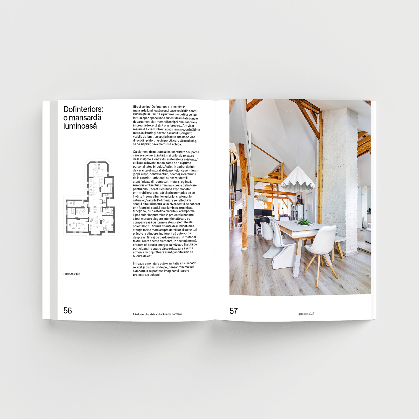 Cea mai nouă apariție din seria igloobest te invită într-o incursiune vizuală și conceptuală prin birourile unora dintre cele mai creative studiouri de arhitectură din România. Fiecare spațiu prezentat reflectă o identitate distinctă și devine o extensie firească a viziunii arhitecților care îl ocupă. De la ateliere-laborator și mansarde luminoase, până la birouri verzi sau intervenții în clădiri de patrimoniu, această selecție surprinde diversitatea modurilor în care arhitectura prinde formă chiar în spațiile unde se gândește și se proiectează.