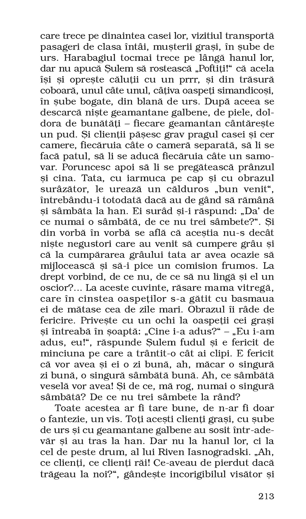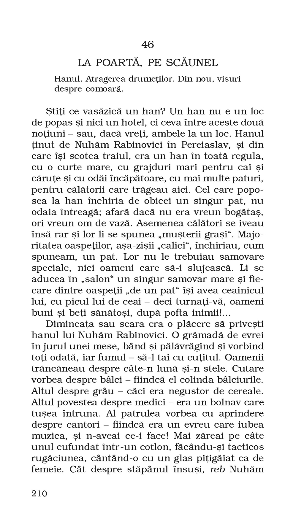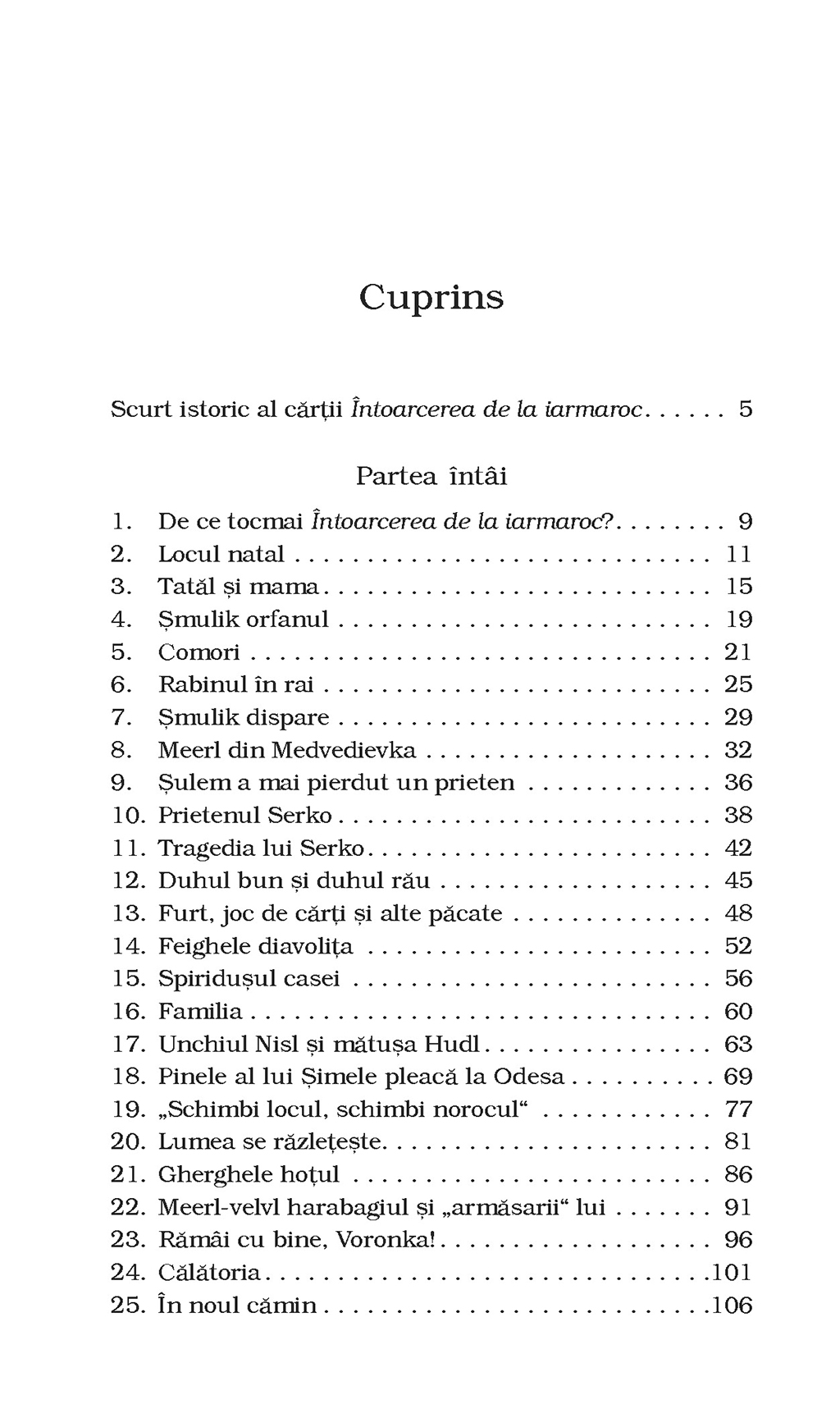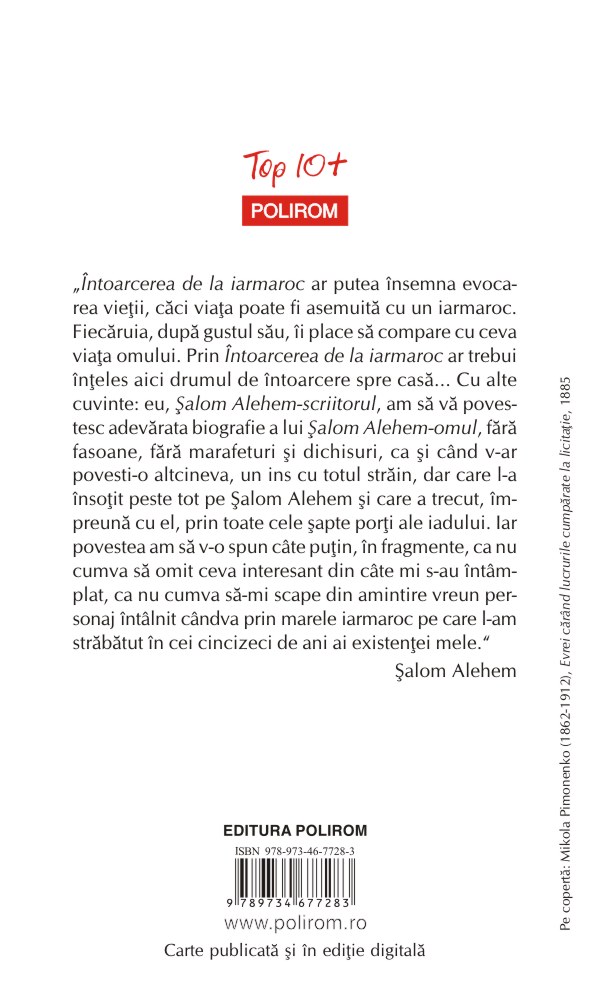 „Întoarcerea de la iarmaroc ar putea însemna evocarea vieţii, căci viaţa poate fi asemuită cu un iarmaroc. Fiecăruia, după gustul său, îi place să compare cu ceva viaţa omului. Prin Întoarcerea de la iarmaroc ar trebui înţeles aici drumul de întoarcere spre casă... Cu alte cuvinte: eu, Şalom Alehem-scriitorul, am să vă povestesc adevărata biografie a lui Şalom Alehem-omul, fără fasoane, fără marafeturi şi dichisuri, ca şi cînd v-ar povesti-o altcineva, un ins cu totul străin, dar care l-a însoţit peste tot pe Şalom Alehem şi care a trecut, împreună cu el, prin toate cele şapte porţi ale iadului. Iar povestea am să v-o spun cîte puţin, în fragmente, ca nu cumva să omit ceva interesant din cîte mi s-au întîmplat, ca nu cumva să-mi scape din amintire vreun personaj întîlnit cîndva prin marele iarmaroc pe care l-am străbătut în cei cincizeci de ani ai existenţei mele.”