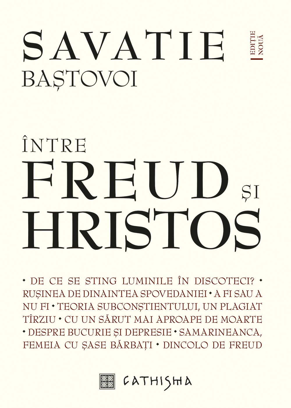 Între Freud și Hristos este titlul care a șocat la începutul anilor 2000 mediile ecleziale. Scrisă de un poet proaspăt convertit, cartea tratează cu multă sensibilitate frămîntările tinerilor aflați între Freud și Hristos. Tipărită în multe ediții și zeci de mii de exemplare, această carte a fost de ajutor profesorilor de religie și preoților tineri în slujirea lor. Stilul aerisit de scriere face cartea ușor de citit pentru oricine, fiind un manifest împotriva limbii predicilor de lemn și al academismelor golite de viață.