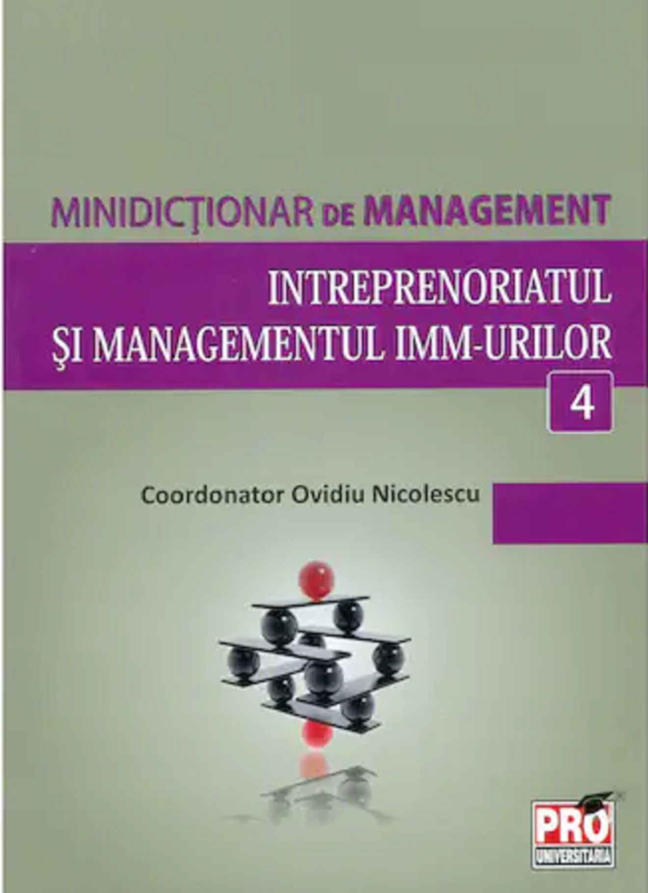 Minidictionarul de management (4) "Strategia si managementul strategic" este conceput ca un instrument de informare, de facilitate a intelegerii si de asistare a persoanelor interesate de problematica acestui domeniu managerial. Minidictionarul contine: a) termenii utilizati cel mai frecvent in aceasta zona a managementului; b) un fond minim de termeni de management esentiali, care se refera la conceptele si instrumentarul de baza manageriale comune tuturor domeniilor manageriale. Acestia au in vedere conceptele de stiinta si practica manageriala, functiile managementului, sistemul si subsistemele manageriale, managerii si leaderii, anumite metode manageriale s.a. Prezentul minidictionar are la baza Dictionarul de management* general, care cuprinde peste 4.000 de termeni manageriali, realizat sub egida stiintifica a Societatii Academice de Management din Romania (SAMRO) si cu suportul Consiliului National al Intreprinderilor Private Mici si Mijlocii din Romania (CNIPMMR) si al proiectului POS-DRU ANTREMAN, unde sunt implicate Anglia Ruskin University din Cambridge, Anglia si ASE Bucuresti. Dictionarul are o structura moderna, acordand o atentie deosebita nu numai definirii riguroase a termenilor, ci si facilitarii identificarii si utilizarii acestora de catre managerii, specialistii in management, studentii care studiaza sau sunt interesati in management si tuturor celor care doresc sa inteleaga aprofundat aceasta zona a managementului si sa il practice cu un plus de rigurozitate si eficacitate.