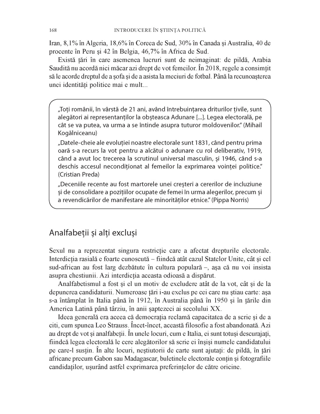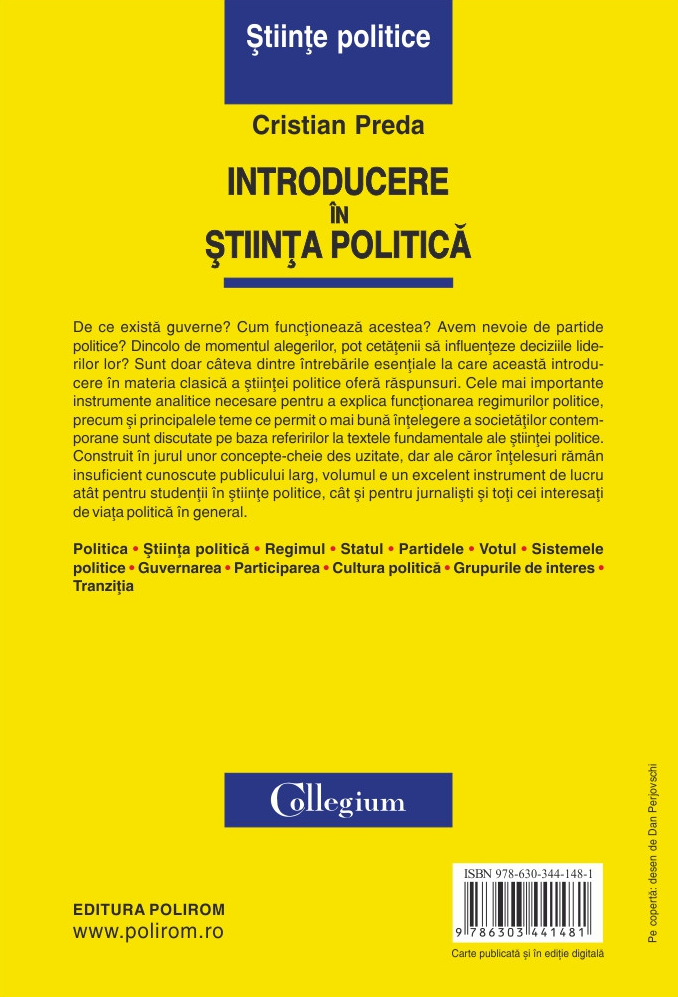 Cele mai importante instrumente analitice necesare pentru a explica funcționarea regimurilor politice, precum și principalele teme ce permit o mai bună înțelegere a societăților contemporane sunt discutate pe baza referirilor la textele fundamentale ale științei politice. Construit în jurul unor concepte-cheie des uzitate, dar ale căror înțelesuri rămân insuficient cunoscute publicului larg, volumul e un excelent instrument de lucru atât pentru studenții în științe politice, cât și pentru jurnaliști și toți cei interesați de viața politică în general.