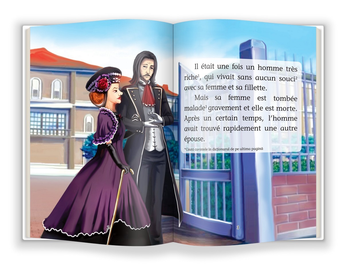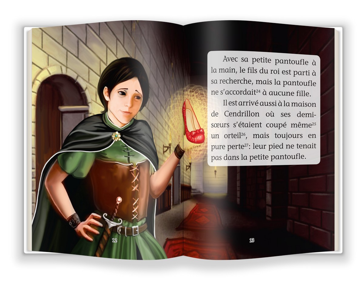 Povestea Cenușăresei, rescrisă pentru copiii care vor să învețe să citească în limba franceză.