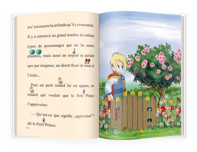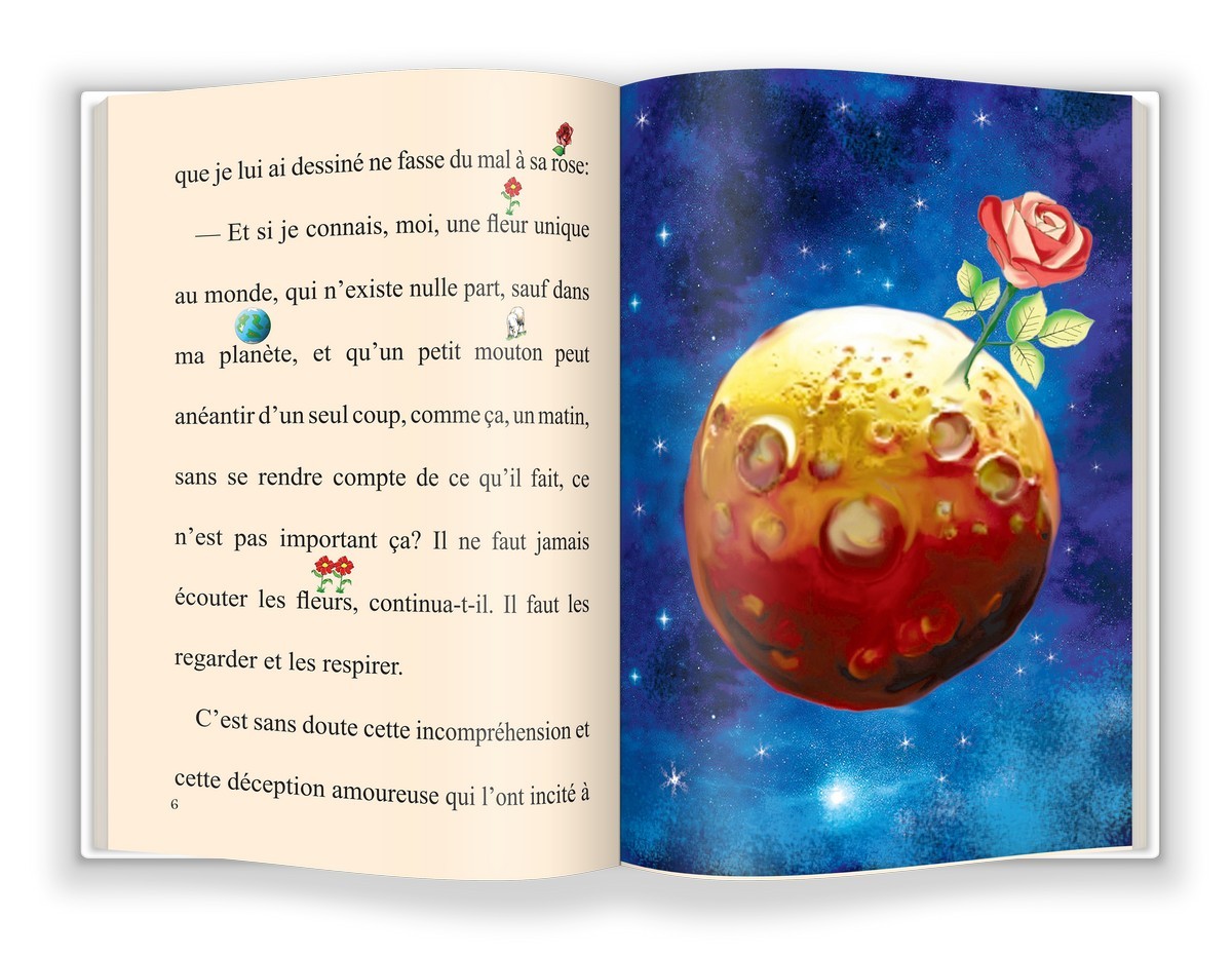 Cartea prezintă înduioșătoarea poveste a Micului Prinț, rescrisă pentru copiii care vor să învețe să citească în limba franceză.