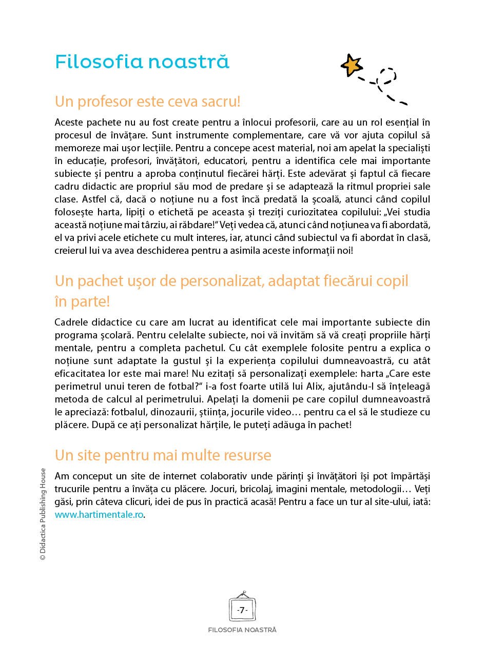 Hărțile mentale ilustrează în mod clar structura fiecărei lecții. Datorită culorilor și desenelor, copilul reține mai ușor, progresează și câștigă încredere în sine.