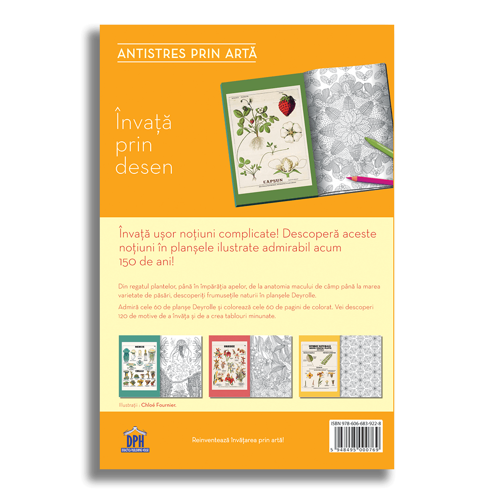 Admiră cele 60 de planșe Deyrolle și colorează cele 60 de pagini de colorat. Vei descoperi 120 de motive de a învăța și de a crea tablouri minunate.