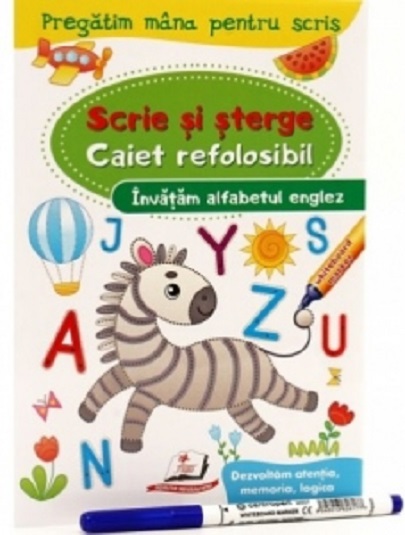 Invatam alfabetul englez - Scrie si sterge - Pregatim mana pentru scris - Caiet refolosibil + Whiteboard marker