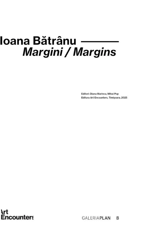 Titlul cărții reia unul dintre titlurile cele mai inspirate și mai relevante din rândul expozițiilor Ioanei Bătrânu, Margini / Margins, așa cum s-au intitulat expozițiile de la Sala Dalles din 2002 și retrospectiva de la Plan B Berlin, zece ani mai târziu, în 2012.
