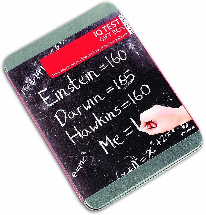 Are you an undiscovered Einstein? Find out just how clever you really are! Take the enclosed IQ test and await your results. The gift tin also includes lots of intelligent facts such as hints on braintraining. A genius gift choice!What's InsideWelcome LetterYour Gift ExplainedIQ & Intelligence bookletIQ practice puzzlesBraintraining leafletSealed IQ testIQ test completion instructionsPostage paid envelopeYour IQ Test certificate displaying your test results will be dispatched to you within 28 days.FAQsIs the IQ test suitable for everyone?The IQ test is aimed at adults aged 18 or over. However, by applying the following simple formula, children aged 13 - 17 can also gain an accurate test result. Please note, the IQ test is not suitable for children aged 12 or under.Age 13: add 25% to their score.Age 14: add 20%Age 15: add 15%Age 16: add 10%Age 17: add 5%Do I have to pay to get my test marked?No, you do not have to pay any test marking or postage costs.How long does it take before I receive my test result?Your test result will be dispatched to you within 28 days once we have received your completed test. Occasionally, factors outside of Gift Republic's control may affect delivery times.How do you know where to send my certificate to?The front sheet of your IQ test paper includes space to write your full name and delivery details. You must enter these details before you return your test for marking.How long do I have to return my test?Your gift code expires 12 months after the date of purchase so you have 12 months in which to complete and return your test. We advise that you complete and return your test as soon as possible.Disclaimer: The IQ test included in this gift package was designed specifically for this gift product by an IQ test compilation expert. Although the IQ result you receive back is a concise representation of your IQ, the enclosed test has not been standardised and therefore there may be a slight variance in accuracy when compared to a standard test. The test results may vary depending upon environment and the length of time the test took to complete. The test is not suitable for children aged 12 or under. Neither Gift Republic Ltd nor any other company supplying this gift will accept any liability in relation to any inaccuracy with the tests results. This is a novelty gift item and must be regarded as such.