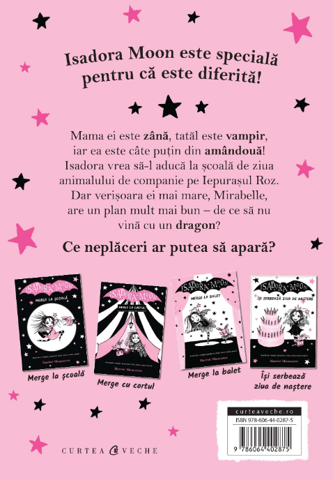 Isadora vrea să l aducă la școală de ziua animalului de companie pe Iepurașul Roz. Dar verișoara ei mai mare, Mirabelle, are un plan mult mai bun – de ce să nu vină cu un dragon?