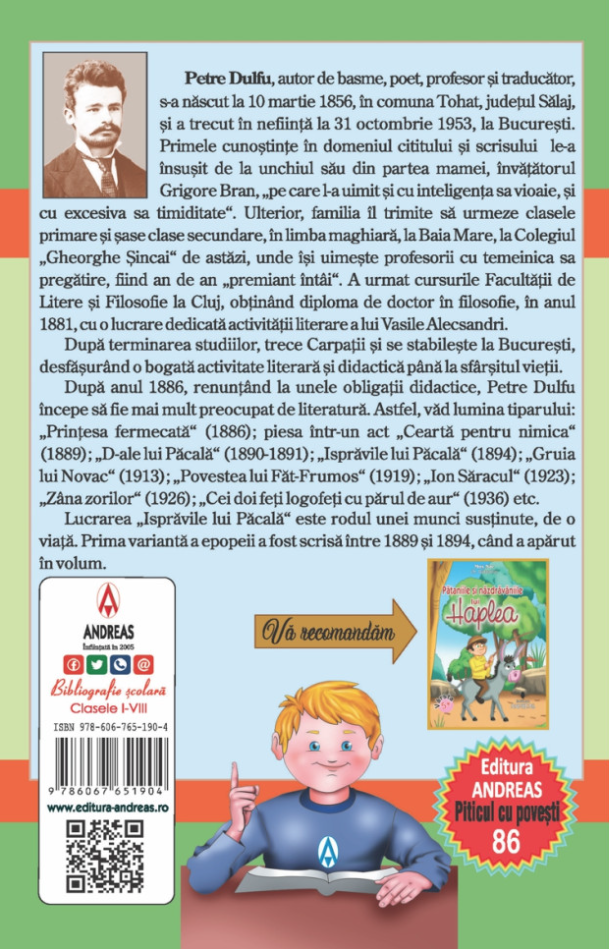 Petre Dulfu, autor de basme, poet, profesor si traducator, s-a nascut la 10 martie 1856, în comuna Tohat, judetul Salaj, si a trecut în nefiinta la 31 octombrie 1953, la Bucuresti. Primele cunostinte în domeniul cititului si scrisului le-a însusit de la unchiul sau din partea mamei, învatatorul Grigore Bran, „pe care l-a uimit si cu inteligenta sa vioaie, si cu excesiva sa timiditate“. Ulterior, familia îl trimite sa urmeze clasele primare si sase clase secundare, în limba maghiara, la Baia Mare, la Colegiul „Gheorghe Sncai“ de astazi, unde îsi uimeste profesorii cu temeinica sa pregatire, fiind an de an „premiant întai“. A urmat cursurile Facultatii de Litere si Filosofie la Cluj, obtinand diploma de doctor în filosofie, în anul 1881, cu o lucrare dedicata activitatii literare a lui Vasile Alecsandri.