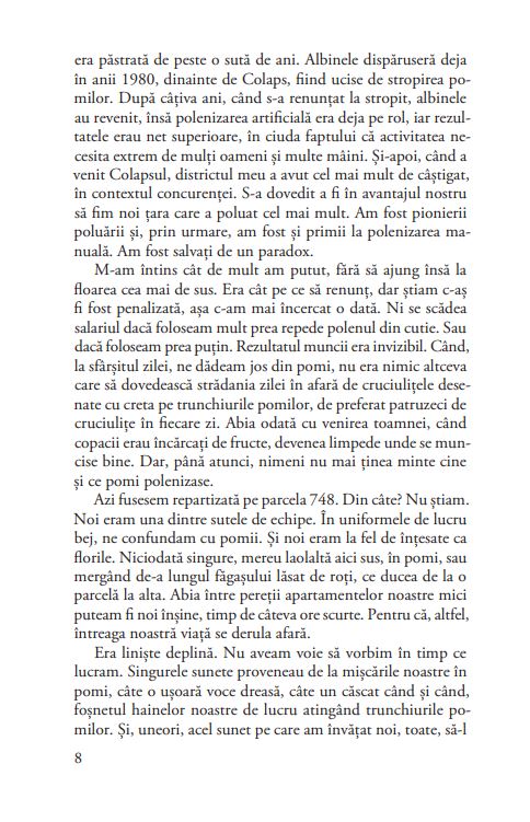 Neliniștitoare, revelatoare, emoționantă și scrisă cu o măiestrie aparte, Istoria albinelor unește în mod surprinzător trei voci distincte din trei epoci diferite într-un roman provocator despre supraviețuirea speciei umane. Relațiile cele mai puternice și în mod paradoxal cele mai fragile, cele dintre părinți și copii, sunt puse în echilibru cu aceea asupra căreia rareori reflectăm – relația dintre om și natură.