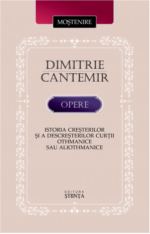 Ediţia de faţă include una dintre operele care i-au adus lui Dimitrie Cantemir faima şi autoritatea europeană de orientalist, tratatul Istoria creșterilor și a descreșterilor Curţii othmanice sau aliothmanice. Este o lucrare redactată în limba latină (Historia incrementorum et decrementorum Aulae othomanicae sive aliothmanicae) între anii 1714 şi 1716, care impresionează atât prin informaţie, cât şi prin interpretarea faptelor de cultură şi de istorie socială. Traducerea lucrării în limba română aparţine lui Dan Sluşanschi, editor al textelor latine ale lui Dimitrie Cantemir, iar studiul introductuv care o însoţeşte e semnat de reputatul cantemirolog, academicianul Virgil Cândea. Secţíunile „Repere cronologice” şi „Iconografie”, care însoţesc volumul, completează informaţia despre cărturar şi această operă fundamentală a lui.