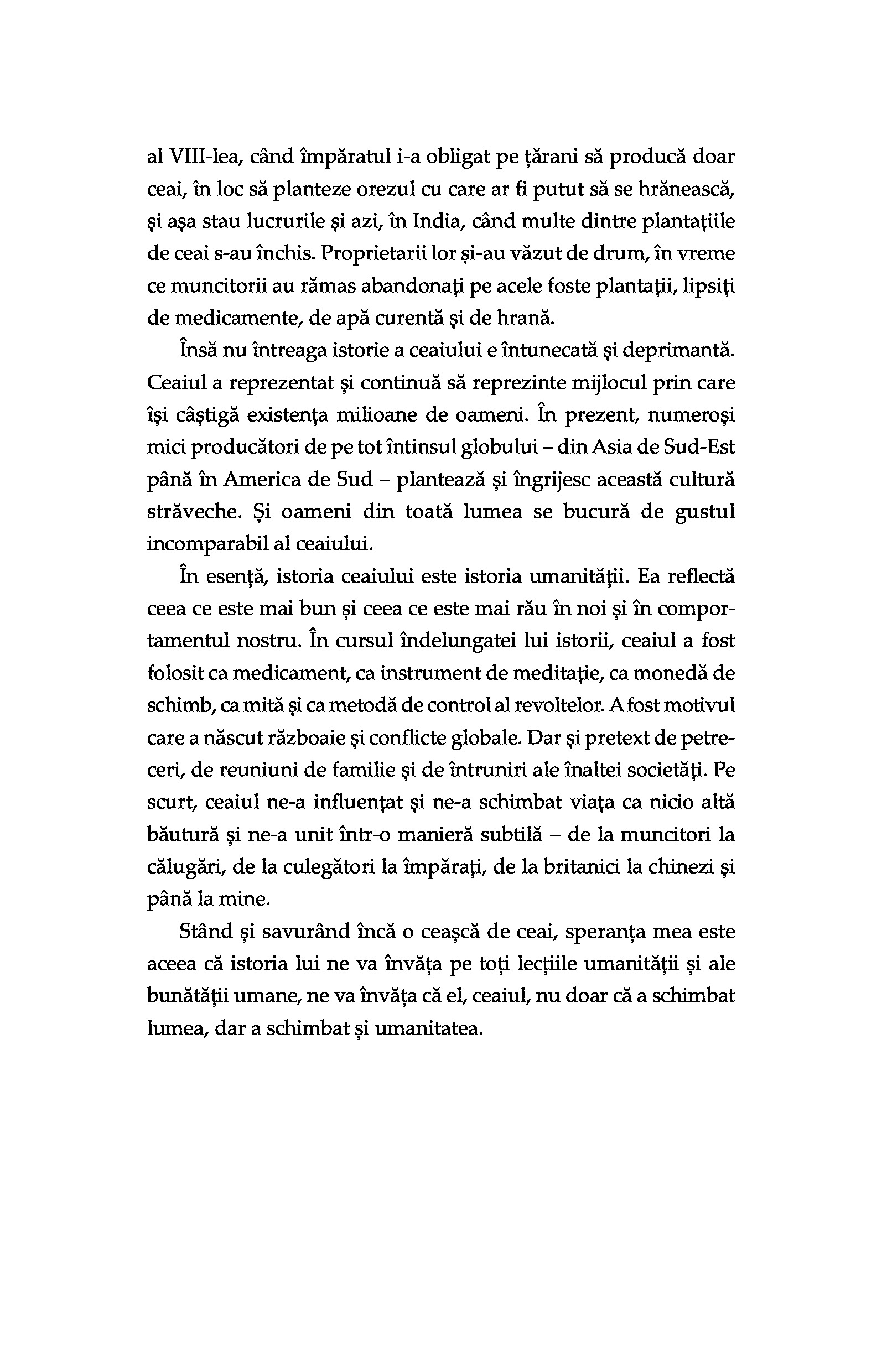 „Dacă ți-e frig, ceaiul o să te încălzească. Dacă te-ai încălzit prea tare, ceaiul o să te răcorească. Dacă ești deprimat, ceaiul o să te înveselească. Dacă ești agitat, ceaiul o să te liniștească.” WILLIAM GLADSTONE (1809-1898), prim-ministru al Marii Britanii