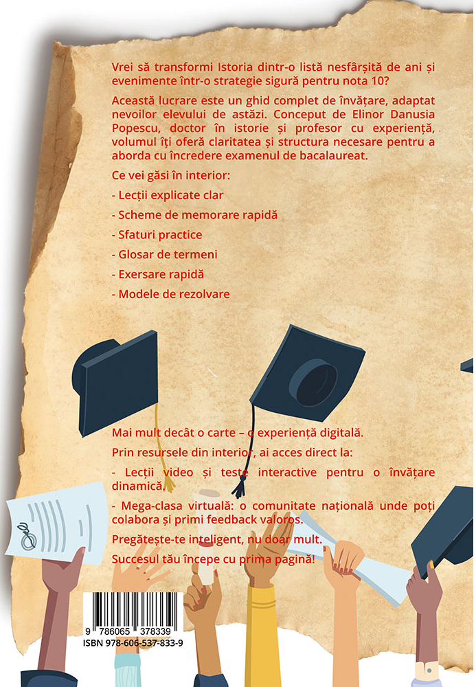 Această lucrare este un ghid complet de învățare, adaptat nevoilor elevului de astăzi. Conceput de Elinor Danusia Popescu, doctor în istorie și profesor cu experiență, volumul îți oferă claritatea și structura necesare pentru a aborda cu încredere examenul de bacalaureat.
