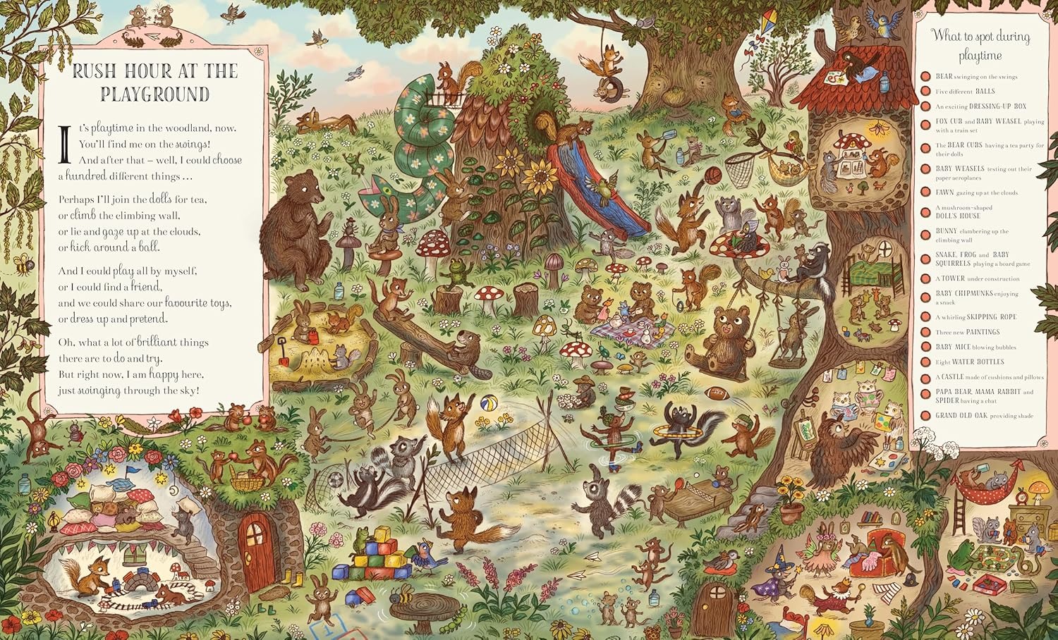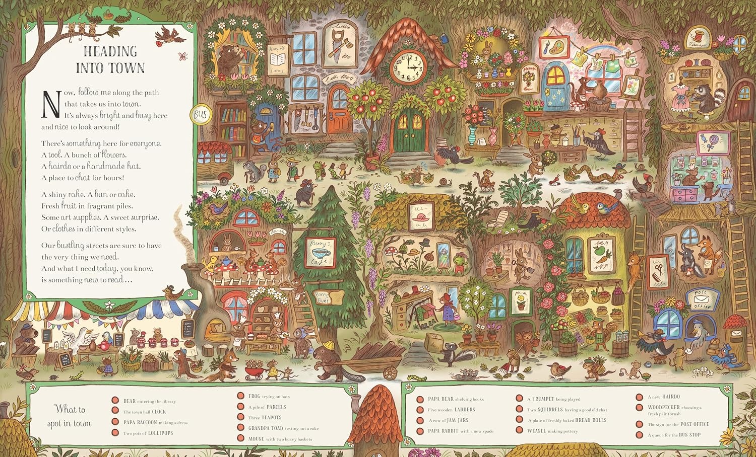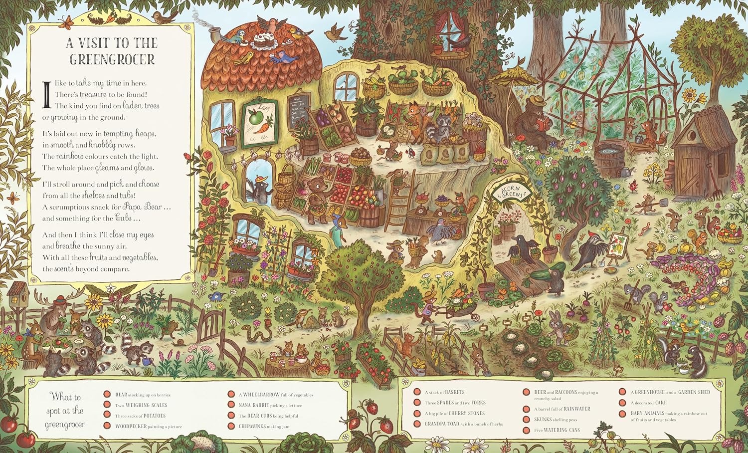 • Engaging spotting activity for young children, with spreads themed around familiar places, and a familiar cast of woodland friends to follow