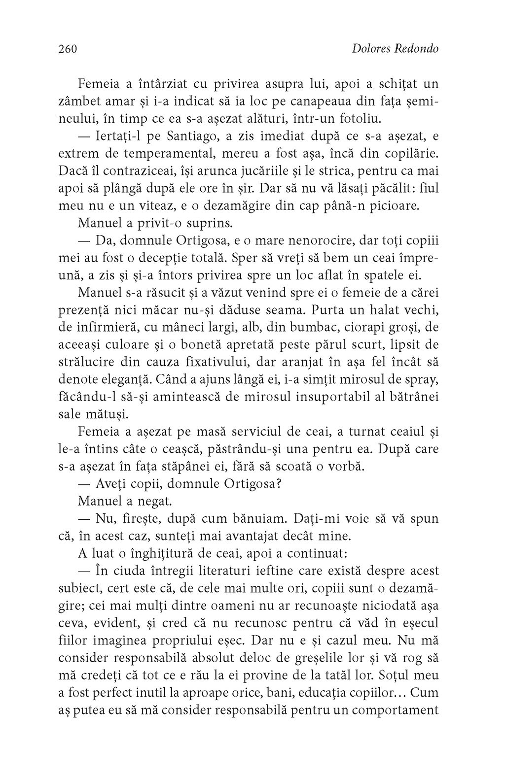 „În natura ce respiră puritate, Redondo descoperă metafore şi simboluri sugestive pentru povestea ei. Autoarea dă dovadă de o forţă de pătrundere fără egal în nuanţarea luptei personajelor sale unele cu altele şi cu propriii demoni, surprinzînd cele mai mici schimbări în perspectiva lor asupra lumii.” (Frankfurter Allgemeine Zeitung)