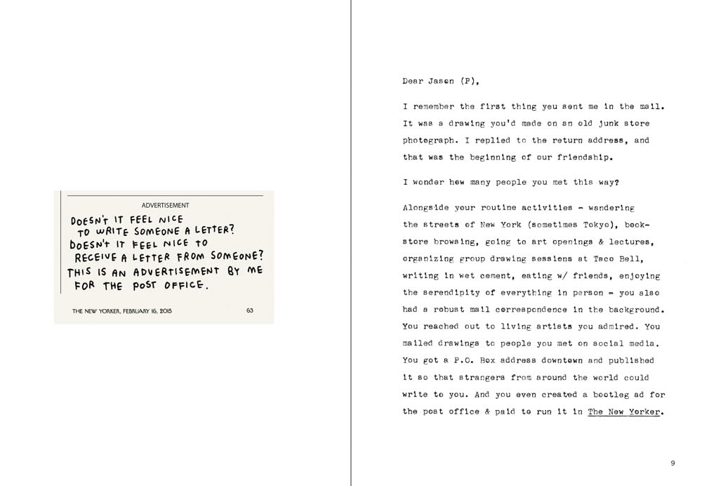 This volume engages with the broader artistic practice of artist and illustrator Jason Polan, famous for his ink sketches of the city's people and places, as collected in the cult favorite tome Every Person in New York. The Post Office collects a body of materials Polan exchanged through the mail with friends, fans and penpals, as well as the artwork that he in turn received, often whimsical drawings and short text works. In gathering the material, the project reflects on Polan's affinity for the US Postal Service and his commitment to mail art as a means to build networks and make connections―a practice he maintained over many years with both friends and strangers alike. The result is a new perspective on Polan's legacy, highlighted through an exchange that is playful and often touching, the contours of which offer an expanded portrait of the artist.