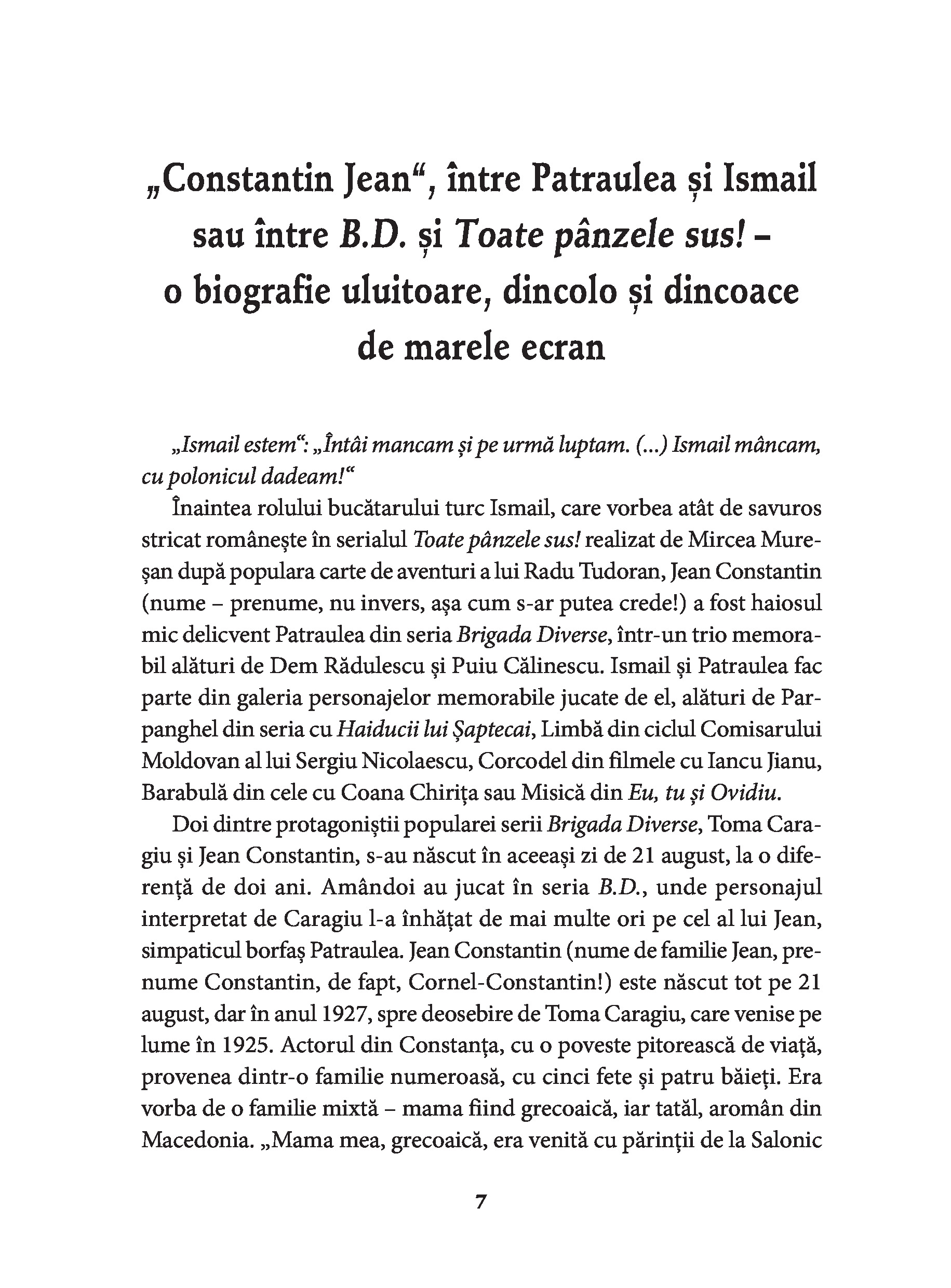 Înaintea de a juca rolul bucatarului turc Ismail, care vorbea atât de savuros stricat românește în serialul Toate pânzele sus!, realizat de Mircea Mureșan dupa populara carte de aventuri a lui Radu Tudoran, Jean Constantin (nume, prenume – nu invers, așa cum s-ar putea crede!) a fost haiosul mic delicvent Patraulea din seria Brigada Diverse, într-un trio memorabil alaturi de Dem Radulescu și Puiu Calinescu.