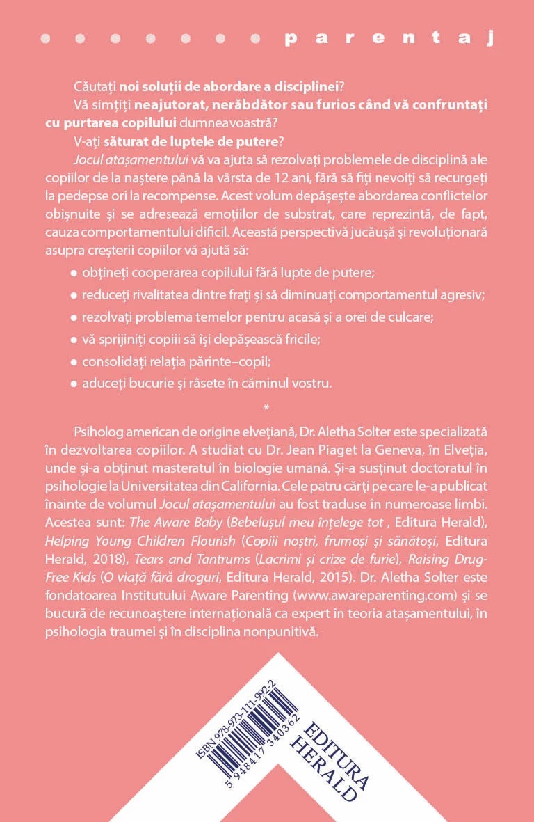 Jocul atasamentului va va ajuta sa rezolvati problemele de disciplina ale copiilor de la nastere pana la varsta de doisprezece ani - fara sa fiti nevoiti sa recurgeti la pedepse ori la recompense si sa construiti o relatie puternica si sanatoasa cu copilul inca de la inceput.