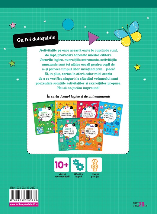 Activitățile pe care această carte le cuprinde sunt, de fapt, provocări adresate micilor cititori. Jocurile logice, exercițiile antrenante, activitățile amuzante sunt tot atâtea ocazii pentru copii de a-și petrece timpul liber învățând prin… joacă! Și, în plus, cartea le oferă celor mici și ocazia de se verifica singuri: la sfârșitul volumului sunt prezentate soluțiile activităților și exercițiilor propuse. Hai să ne jucăm împreună!