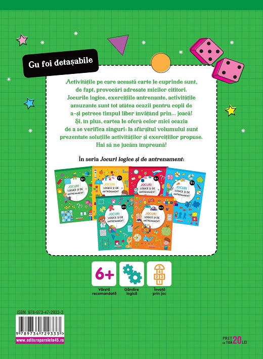 Activitățile pe care această carte le cuprinde sunt, de fapt, provocări adresate micilor cititori. Jocurile logice, exercițiile antrenante, activitățile amuzante sunt tot atâtea ocazii pentru copii de a-și petrece timpul liber învățând prin… joacă! Și, în plus, cartea le oferă celor mici și ocazia de se verifica singuri: la sfârșitul volumului sunt prezentate soluțiile activităților și exercițiilor propuse. Hai să ne jucăm împreună!