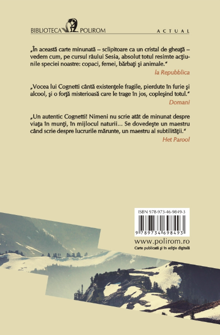 „În această carte minunată – sclipitoare ca un cristal de gheaţă – vedem cum, pe cursul râului Sesia, absolut totul resimte acţiunile speciei noastre: copaci, femei, bărbaţi şi animale.” (la Repubblica)