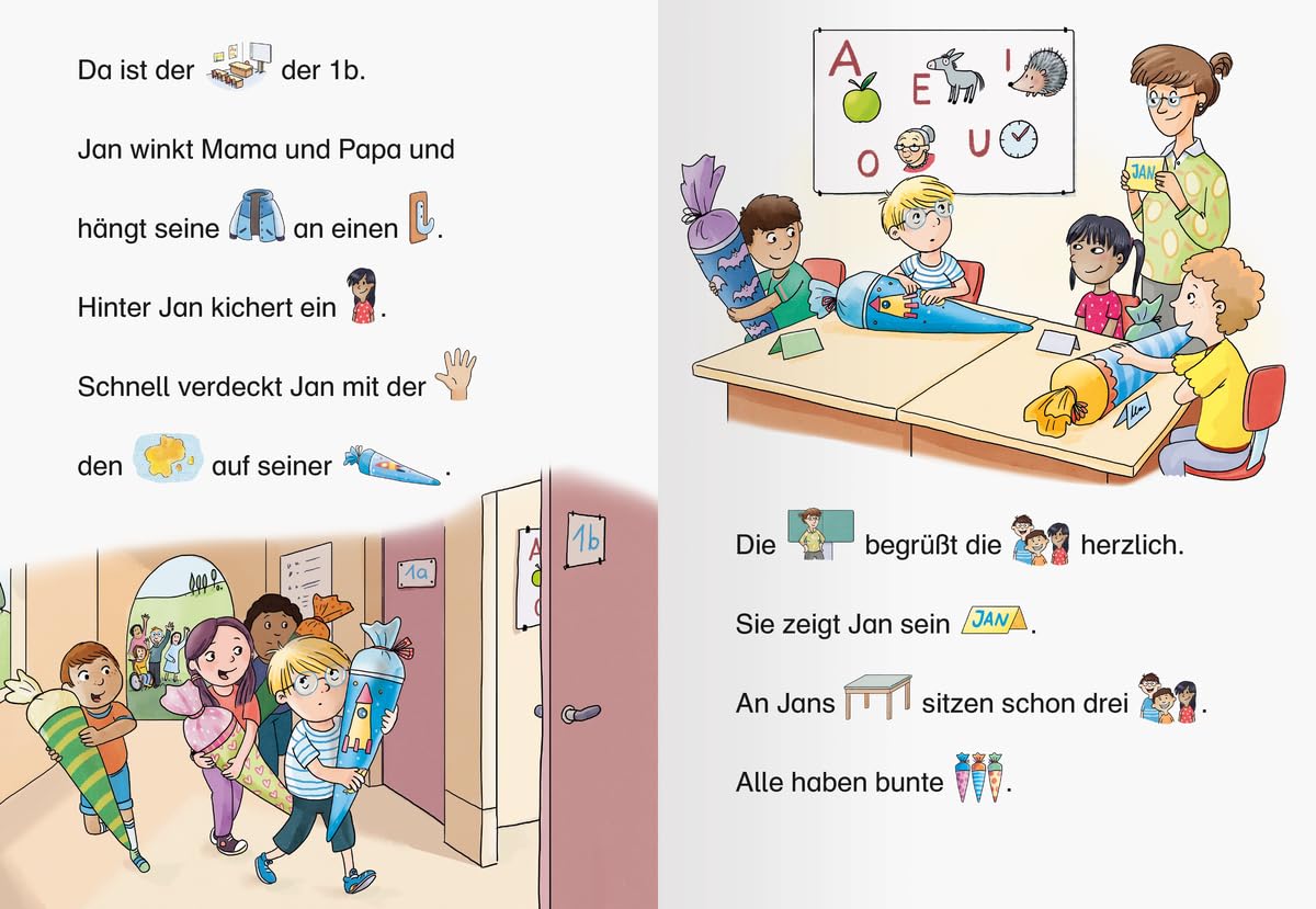 Endlich der erste Schultag! Wie toll die Schultüte aussieht! Wer wird wohl der Sitznachbar? Und was kann man in der Pause so machen? Hier können die Kids alles selbst eintragen, Fotos einkleben, Bilder malen und die schönsten Erinnerungen festhalten. Lustige Geschichten zum Mitlesen, sowie spannende Rätsel für Lesestarter begleiten das Kind durchs Schuljahr. So macht Lesenlernen Spaß!