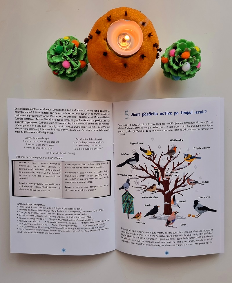 Fratele mai tanar al Jurnalului de toamna, acest nou material va propune voua, parintilor, educatorilor si profesorilor, un alt mod de a le releva copiilor prin joaca, povesti, legende si ghicitori, ce se intampla cu copacii si florile iarna, ce animale hiberneaza si ce pasari raman active, elementele meteo specifice anotimpului rece, luna si fazele ei, sarbatori de iarna mai mult sau mai putin cunoscute.