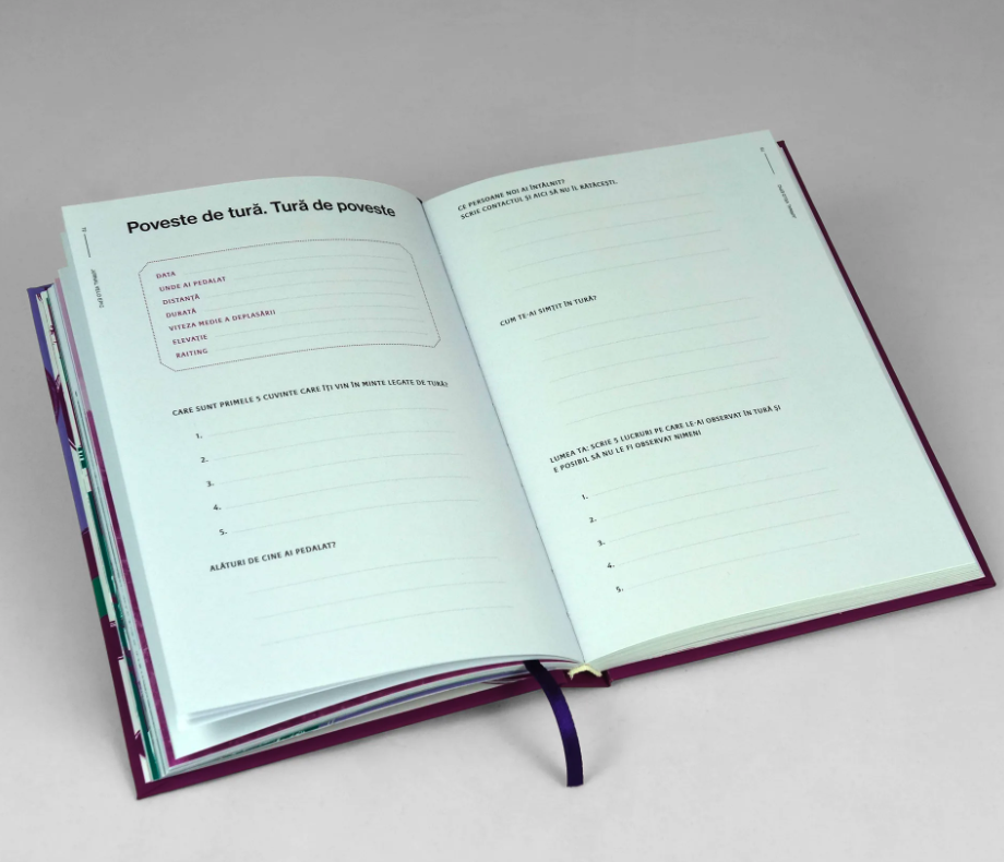 Intreaga experienta de pedalat capat o important colosal. Te ghidăm cu intrebãri, te provocãm cu câteva jocuri si surprize. Dacã doresti poti insera fotografii sau alte simboluri. Ce ti se pare acum obisnuit, peste ani îti va trezi emotie, zâmbet, bucurie, mândrie... E povestea ta despre cât e de frumoasã viata din saua bicicletei! Ce ne amintim si ce e demn sã fie scris pe hârtie are valoare.