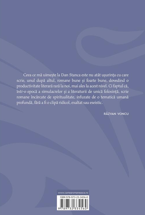 Ceea ce mă uimește la Dan Stanca este nu atât ușurința cu care scrie, unul după altul, romane bune și foarte bune, dovedind o productivitate literară rară la noi, mai ales la acest nivel.