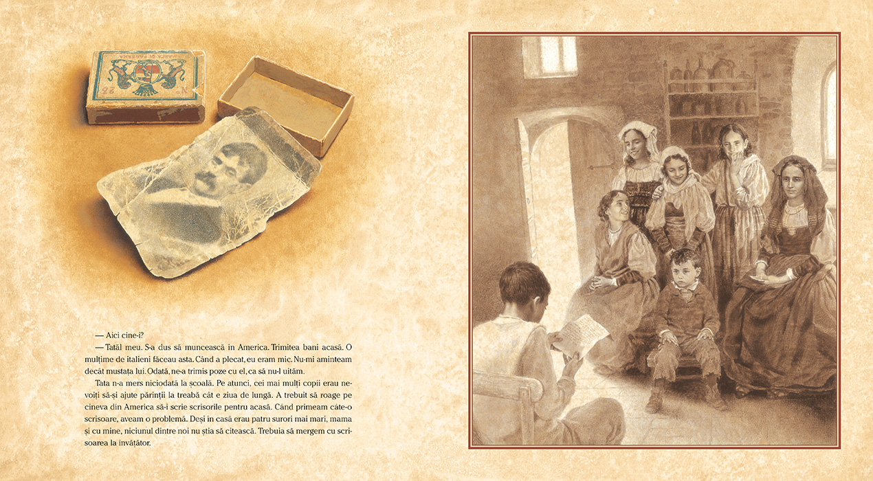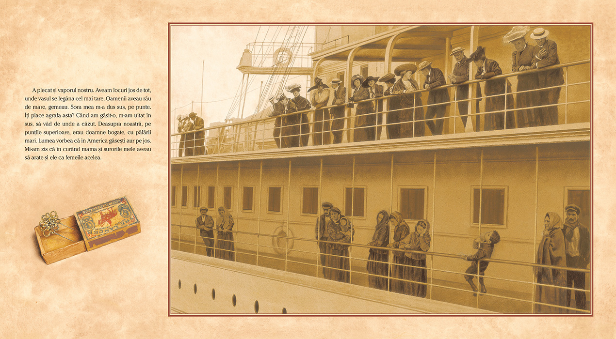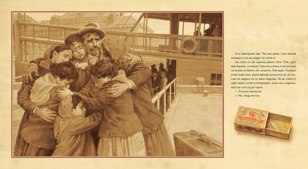 Odată, am avut un an secetos. Nu s-a făcut grâul. Nu am mai avut macaroane. Învățătorul i-a scris tatălui meu o scrisoare din partea noastră. Am așteptat. După vreme îndelungată, am primit înapoi o scrisoare cu bilete de vapor pentru America. Când am plecat, bunica mea a rămas plângând în drum. Striga în urma noastră: „O să mâncați pâinea de-acolo și n-o să vă mai amintiți de casa voastră!” Striga și plângea. Am mers cu trăsura până la Napoli. Acolo am văzut pentru prima dată automobile. Și băuturi la sticlă. Și marea. În așteptarea vaporului, am dormit trei nopți în port, pe jos. Tot acolo am găsit și cutiile de chibrituri. Îi promisesem bunicii că n-o s-o uit – că n-o să uit nimic-nimic. Așa am început să țin jurnalul.