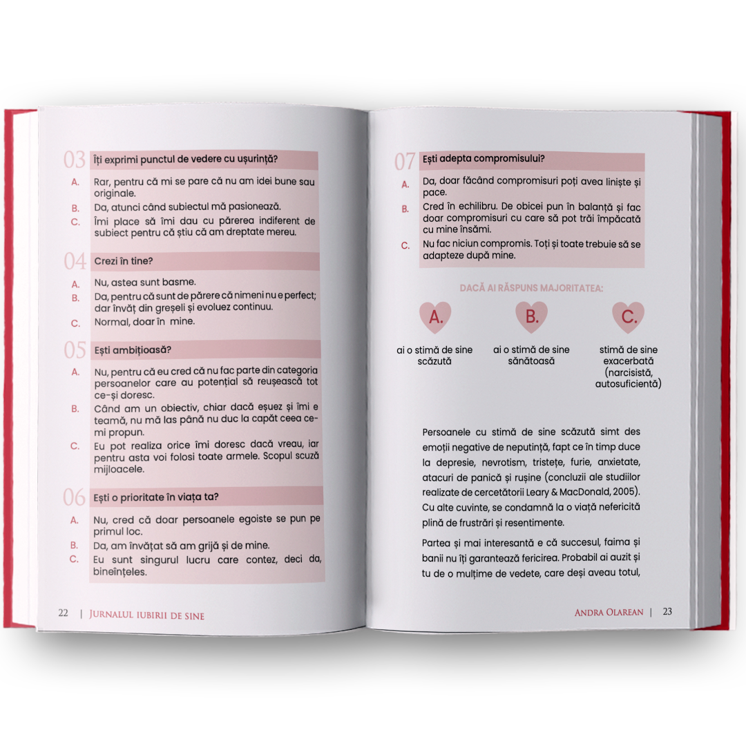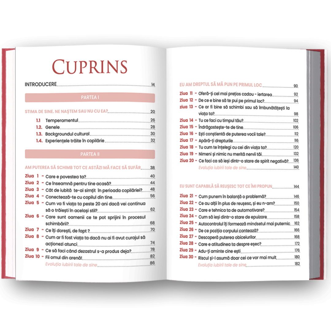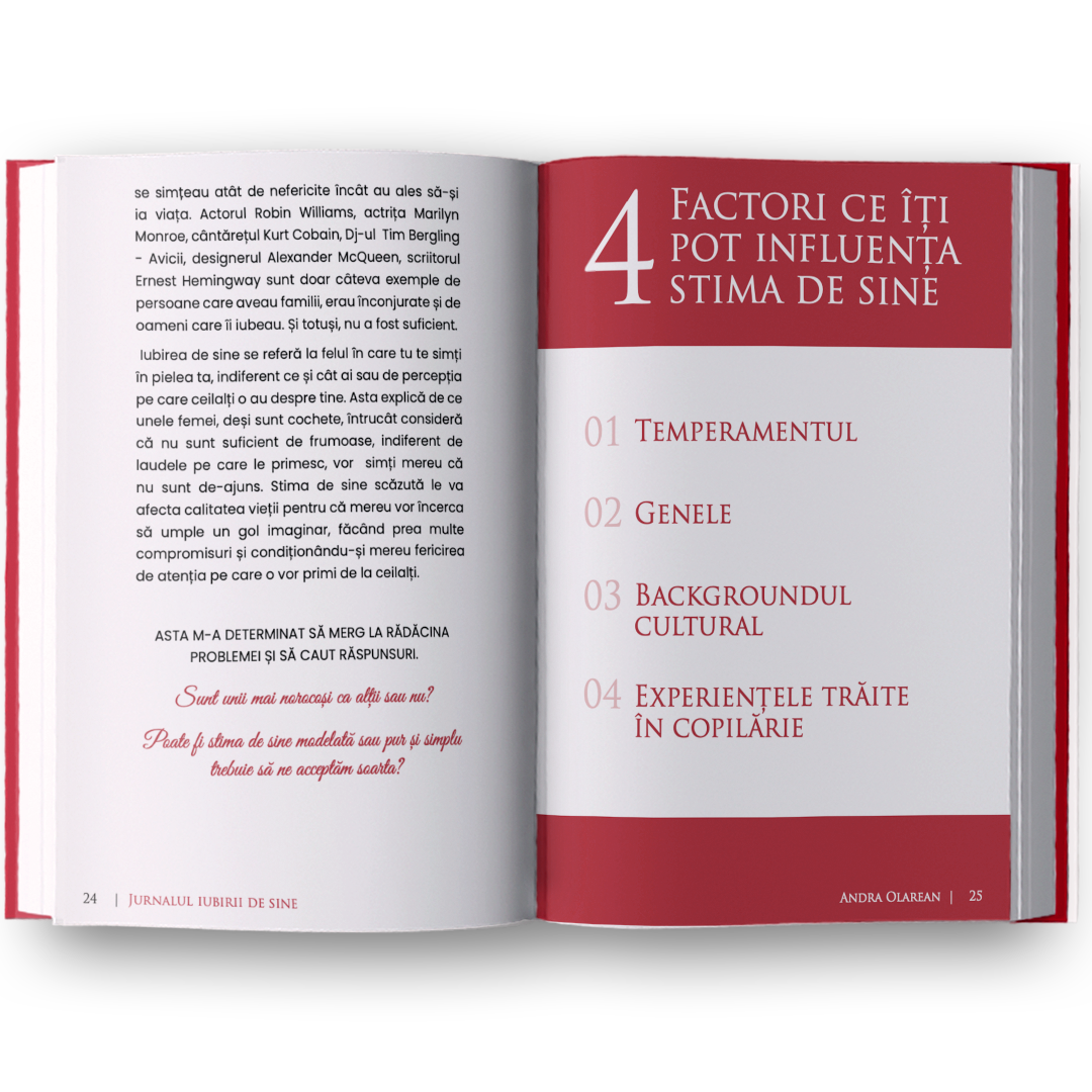 Acest jurnal reprezintă un curs intensiv de vindecare prin care îmi propun să căutăm împreună motivele ce stau în calea fericirii tale, în calea iubirii tale de sine. Se spune că un obicei nou, pentru a putea deveni o rutină, trebuie să îl practici constant minimum 21 de zile consecutive. Tocmai pentru că îmi doresc să te ajut să-ți schimbi viața cu adevărat, te voi îndruma în fiecare zi, pentru o perioadă de 50 de zile oferindu-ți exerciții și teme de reflecție ce te vor ajuta să te ierți și să te iubești din nou, cu adevărat!