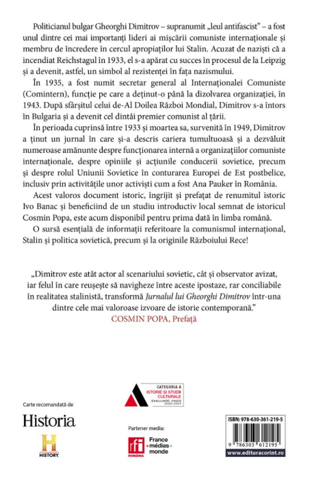 Jurnalul politic al liderului Internaționalei Comuniste, bulgarul Gheorghi Dimitrov, unul dintre colaboratorii lui Stalin. Referiri la Germania nazistă, Uniunea Sovietică, Al Doilea Război Mondial, sovietizarea Europei de Est, inclusiv România.