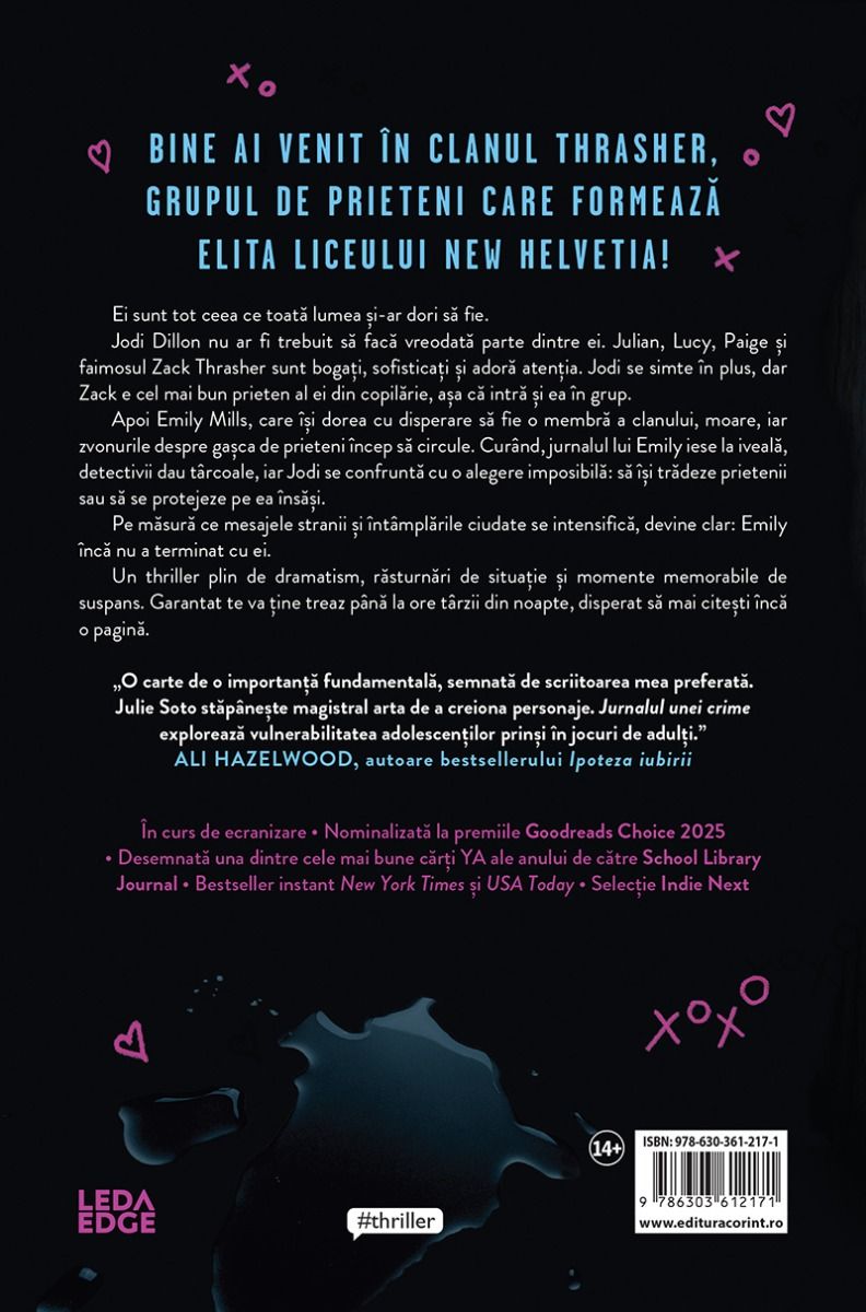 Apoi Emily Mills, care își dorea cu disperare să fie o membră a clanului, moare, iar zvonurile despre gașca de prieteni încep să circule. Curând, jurnalul lui Emily iese la iveală, detectivii dau târcoale, iar Jodi se confruntă cu o alegere imposibilă: să își trădeze prietenii sau să se protejeze pe ea însăși.