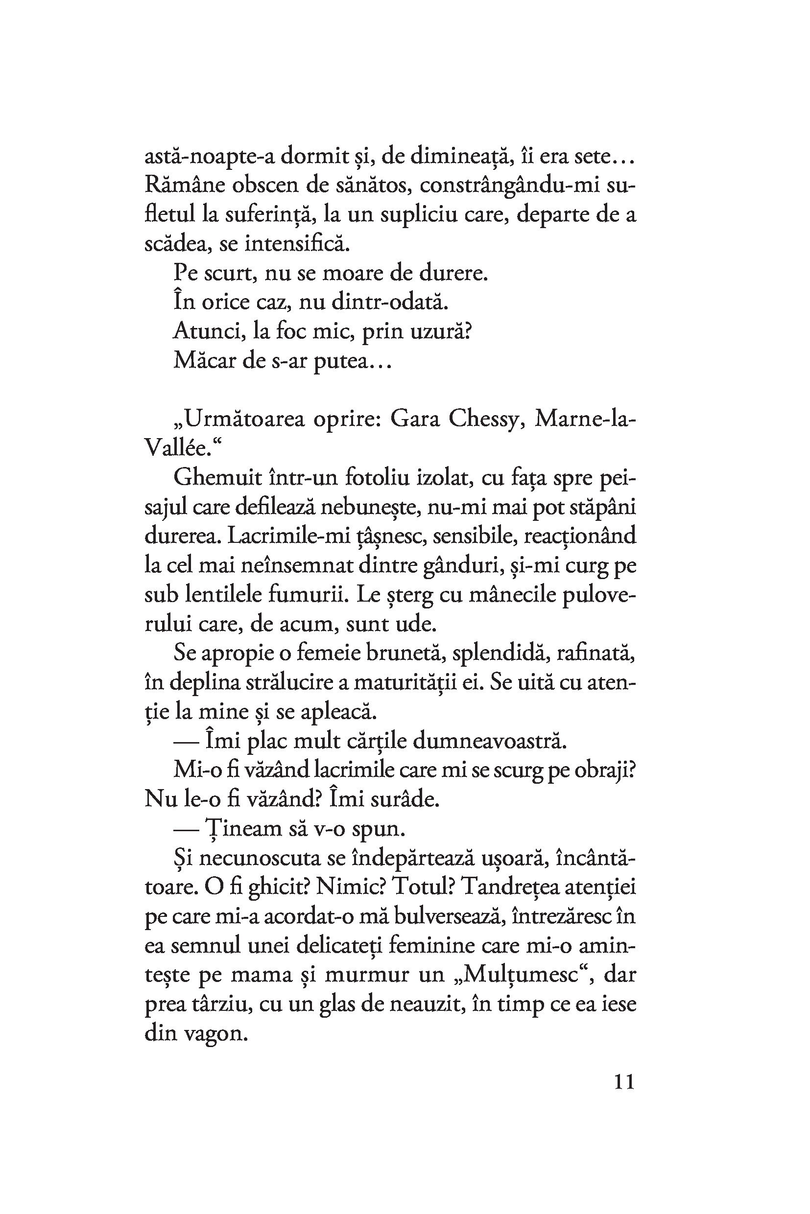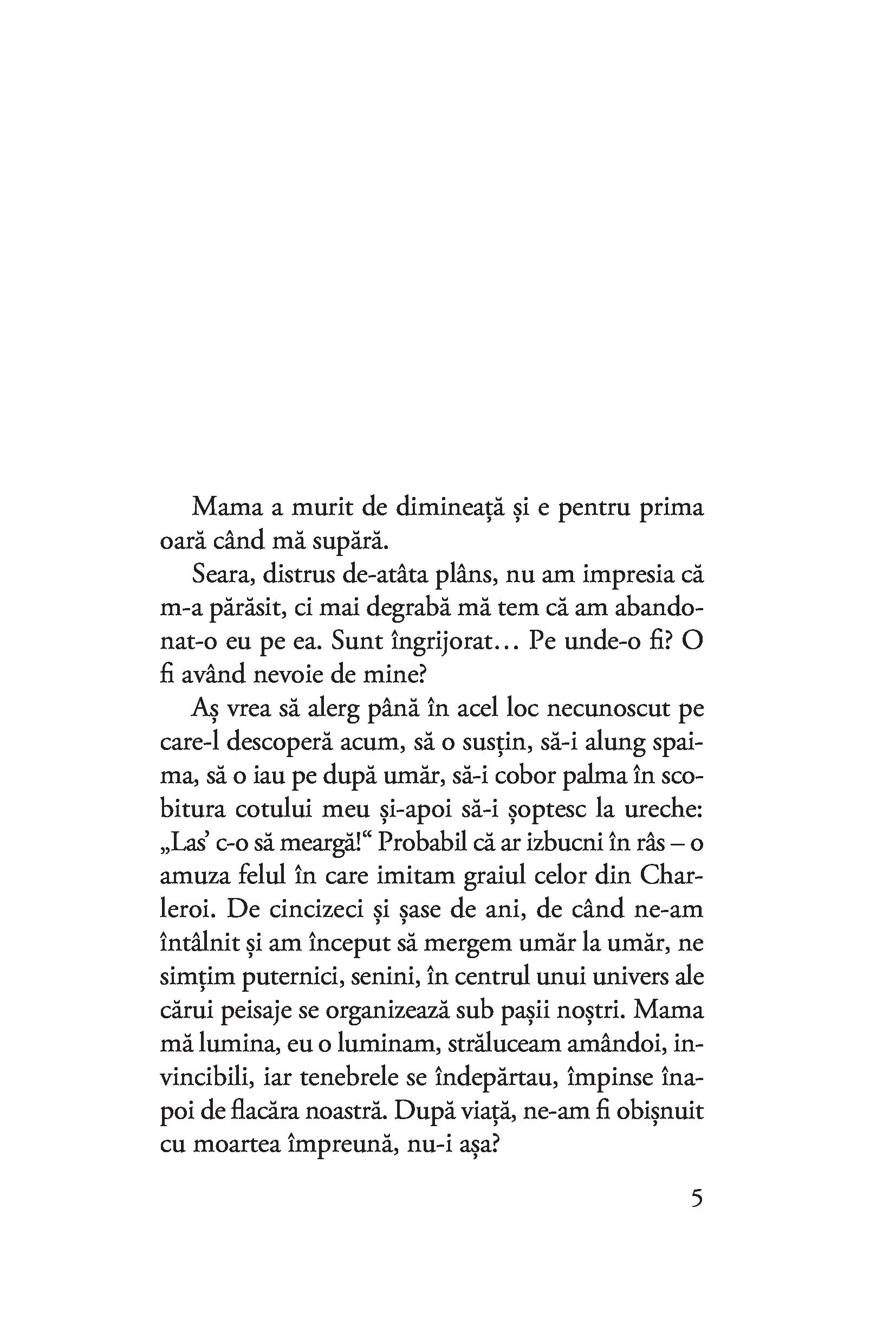 „Un scriitor nu poate reînvia pe nimeni, dar poate da viață prin cuvinte. La doi ani de la dispariția mamei sale, autorul se hotărăște să-și transforme jurnalul doliului în carte – o carte în care nu vorbește despre el, ci despre noi, noi toți, care trebuie să înfruntăm, mai devreme sau mai târziu, pierderea părinților. Să dai nume durerii, să trasezi apoi un drum spre lumină, nu e oare acesta cel mai frumos dar pe care un romancier îl poate face cititorilor săi?“ — Le Pèlerin