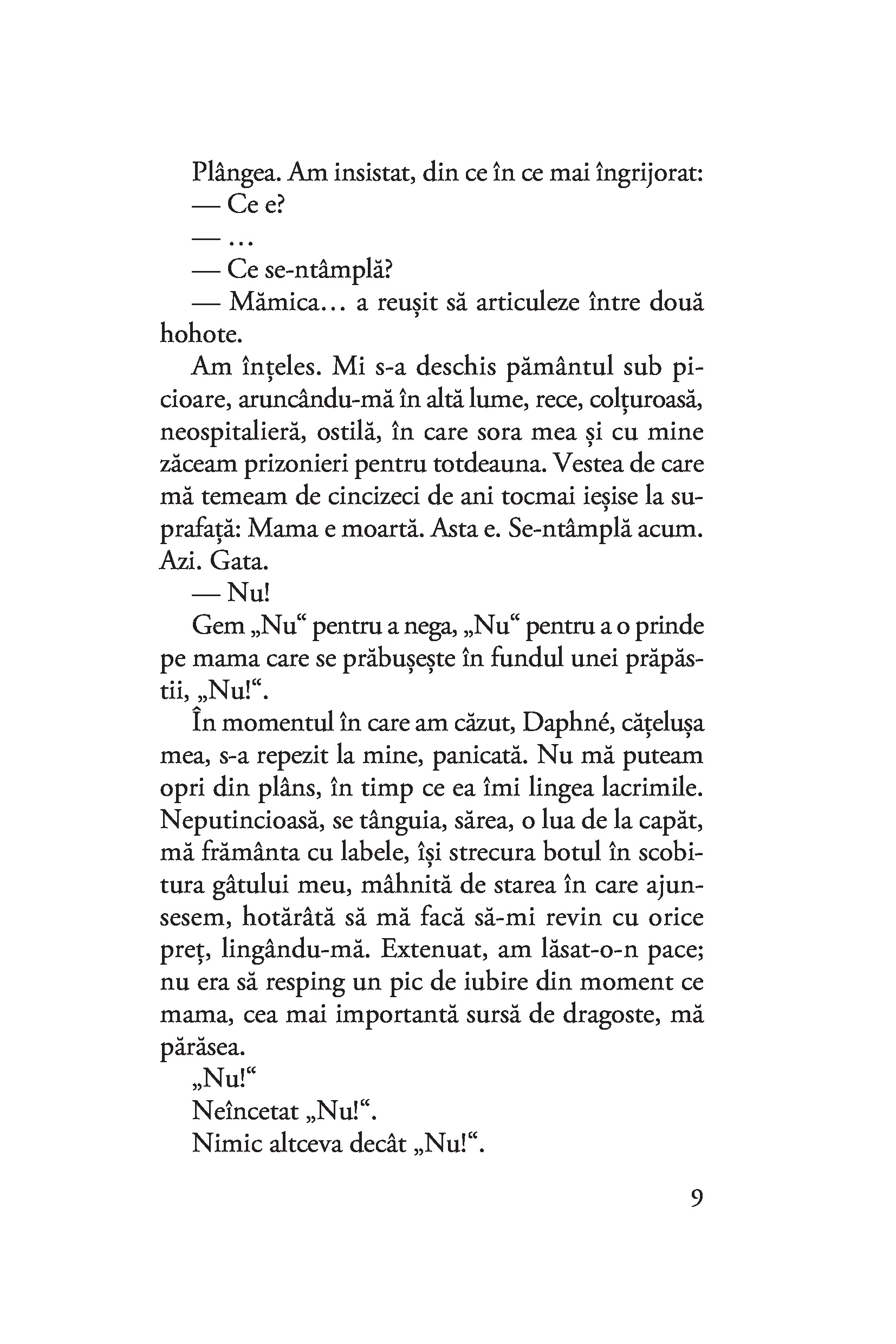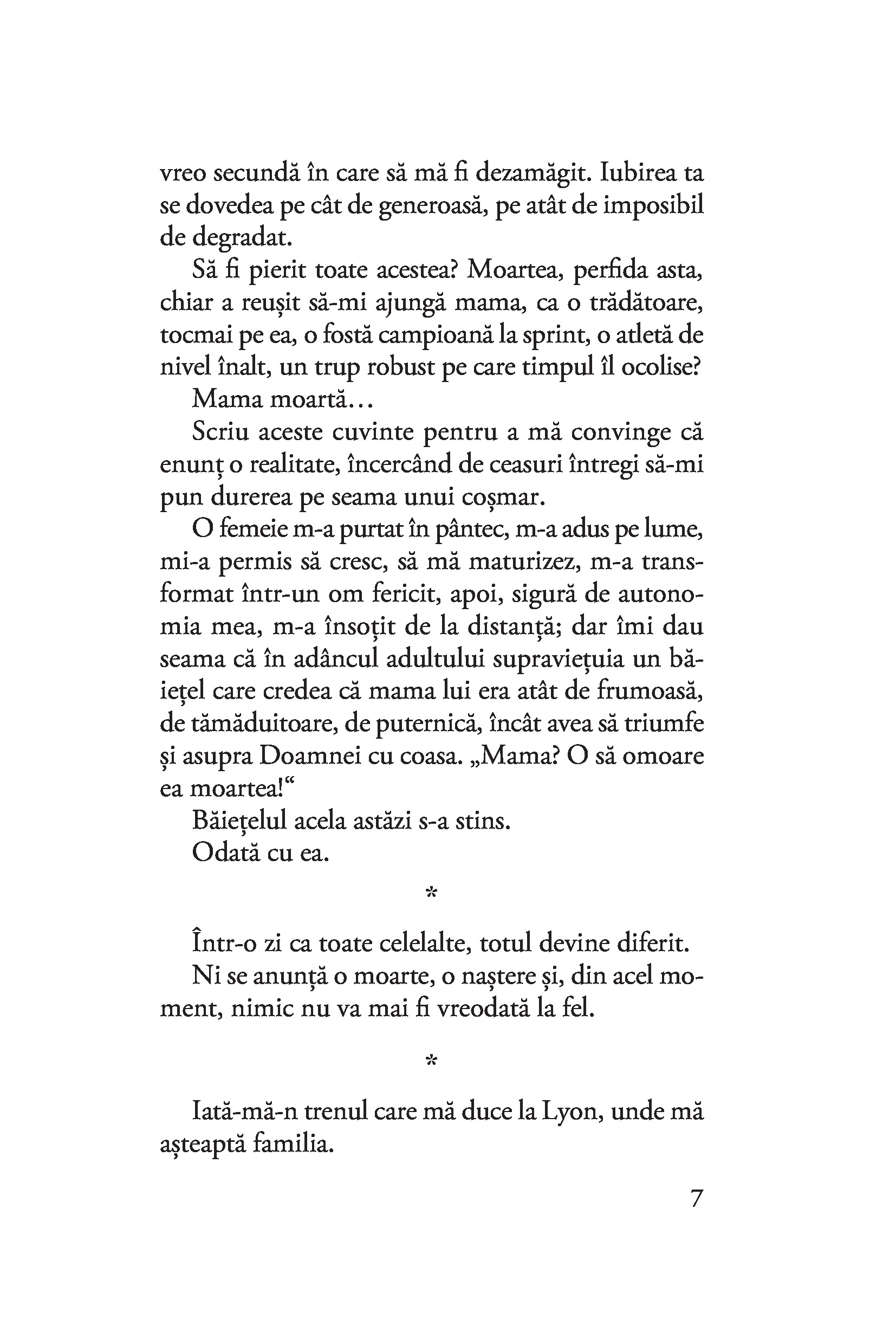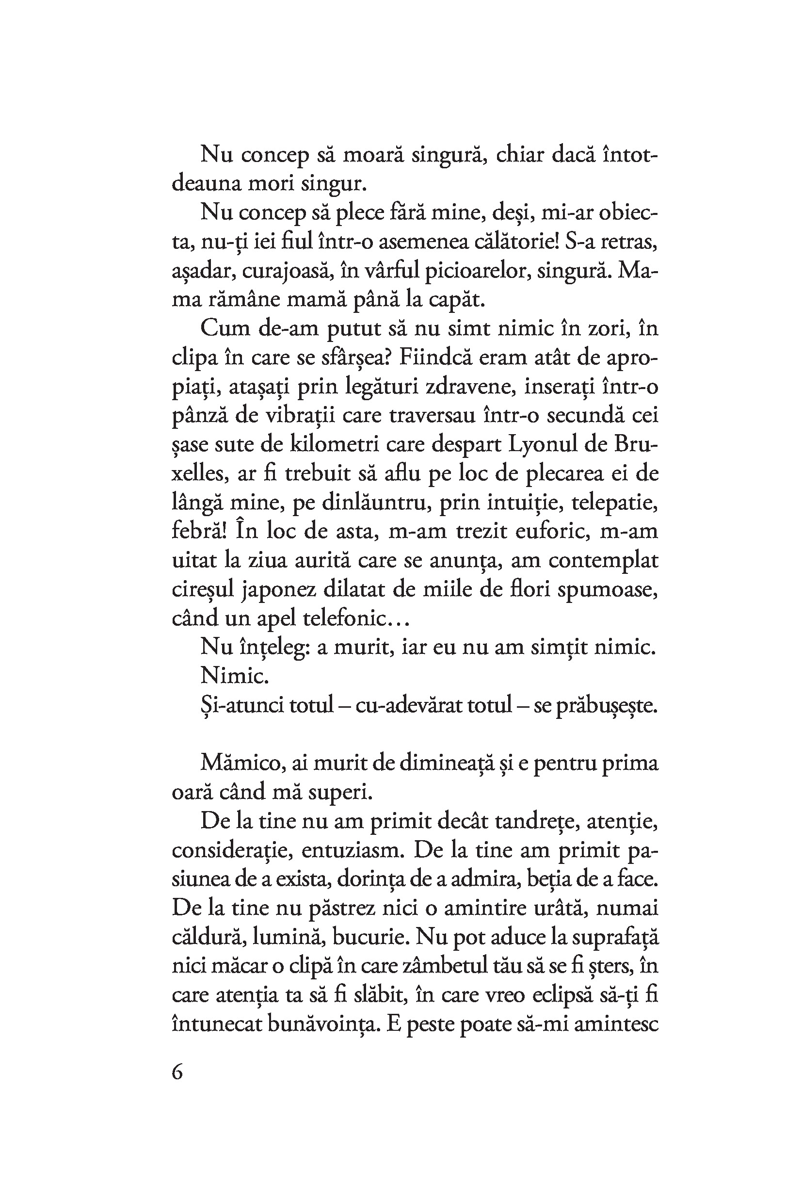 Fiul documentează, în tulburătoarele pagini ale acestei confesiuni, cei doi ani în care parcurge drumul de la deznădejde la conștientizarea datoriei de a fi fericit – singura cale de a-și omagia mama.