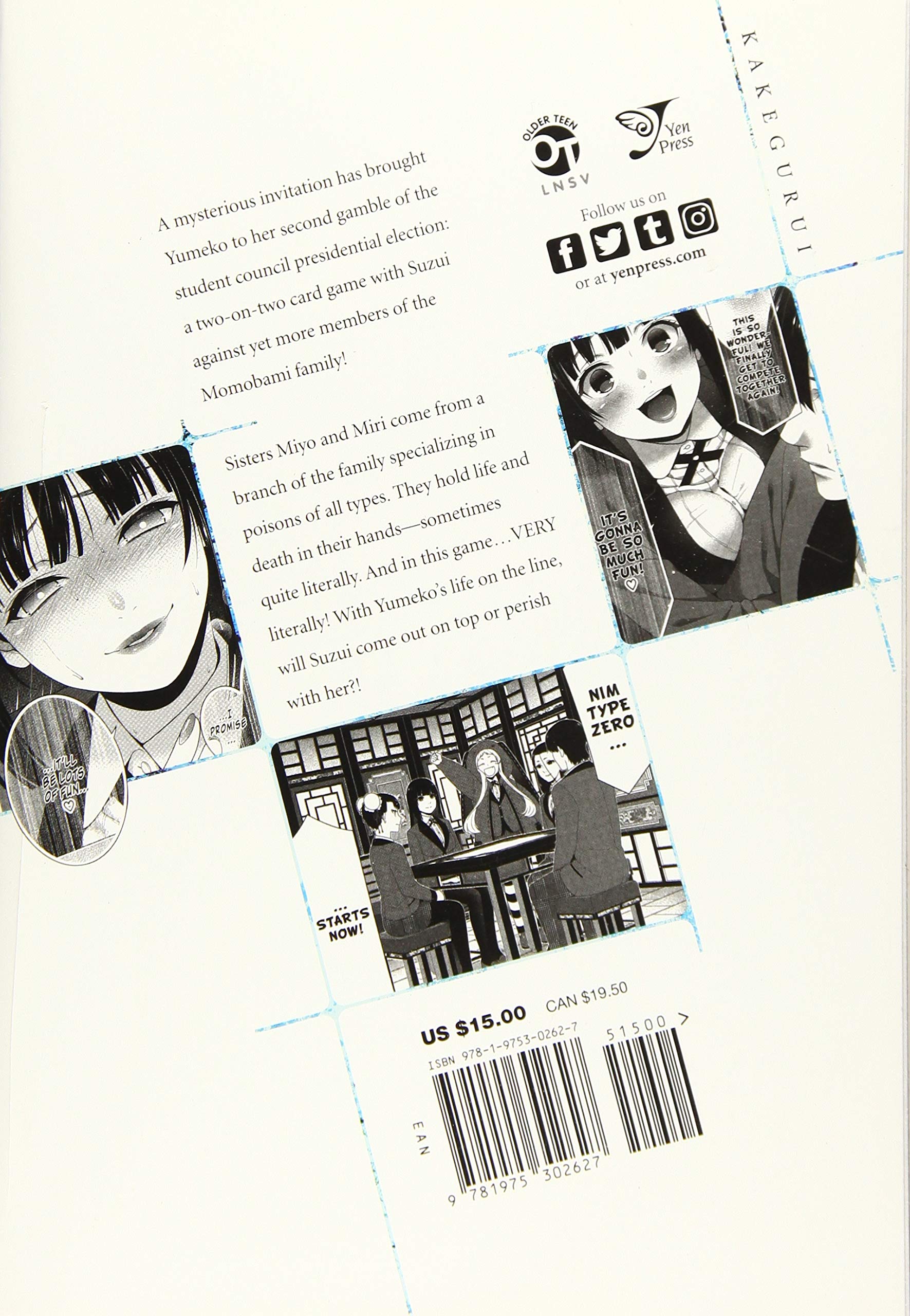 Yumeko has received a mysterious letter inviting her to engage in another election bet! Will she accept!? (Do you have to ask?) As the Hyakkaou Academy General Election rages on, Yumeko engages in a two-on-two gamble with votes on the line! It looks like a simple card game with simple rules, but is that all there is to it...?