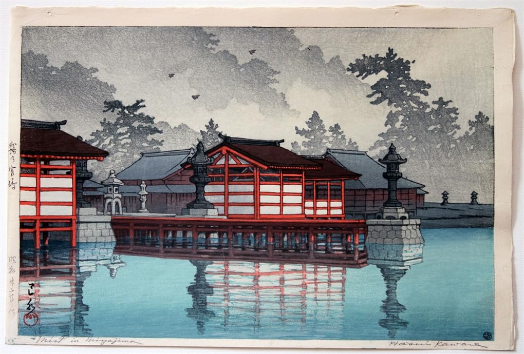 Hasui began his artistic career studying Japanese painting. However, soon after seeing Shinsui's Eight Views of Lake Biwa series, Hasui turned to woodblock printing in 1919. Shozaburo Watanabe was the first to recognize his artistic genius, and Hasui Kawase soon became the most popular artist working for this prestigious publisher. He produced nearly a thousand woodcuts in a career that spanned almost forty years. Towards the end of his life, the Japanese government recognized him as a 'Living National Treasure' for his contribution to Japanese culture.