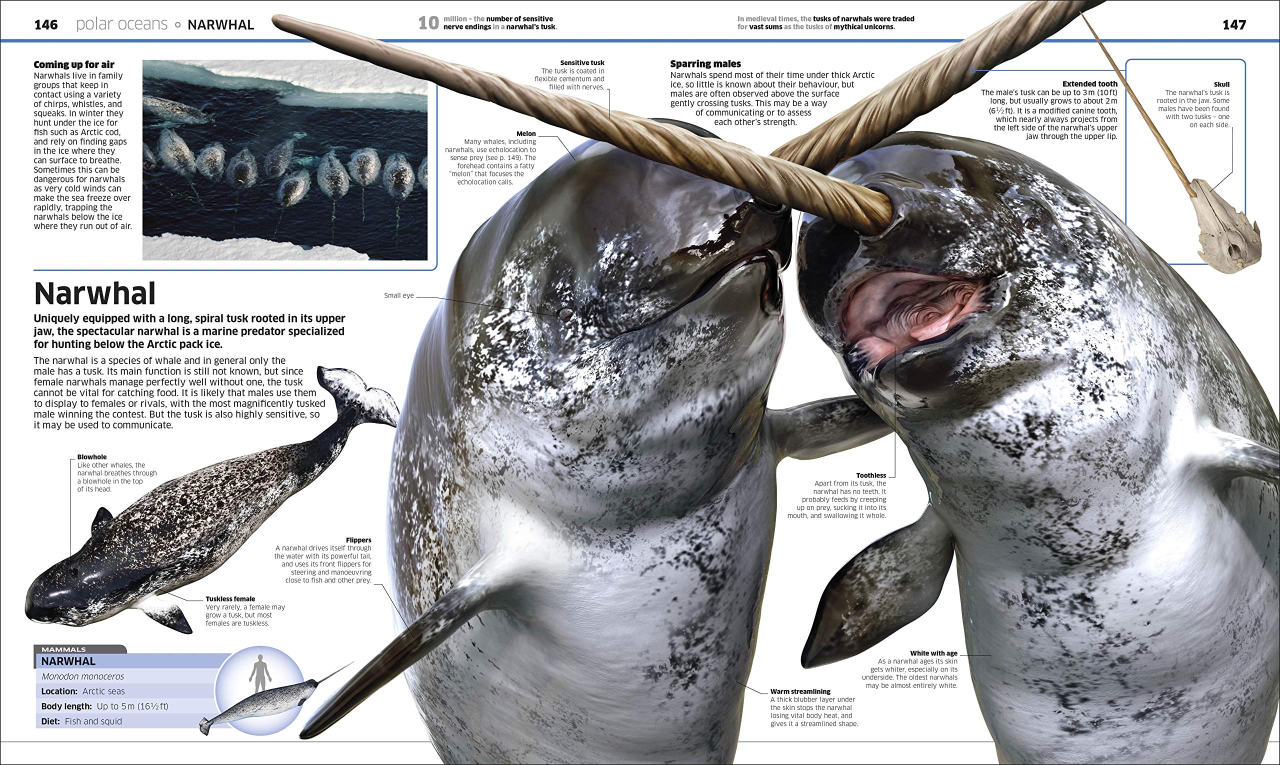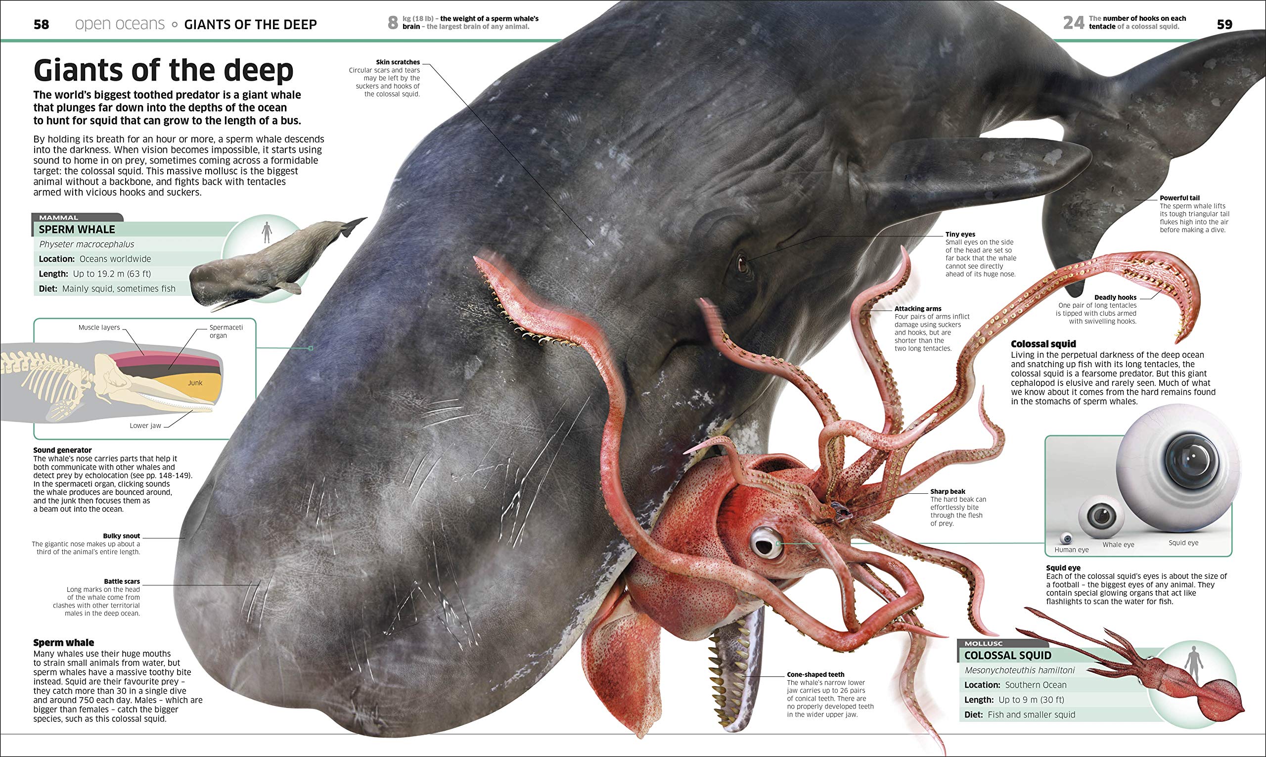 Using 3D illustrations and a level of detail you can't find in other books, this children's ocean encyclopedia is perfect for home learning and study support. It takes you on a world tour of the waters that cover 70 percent of our planet, taking in marine biology, geography, geology, and ecology. See the sharks, jellyfish, turtles, dolphins, octopuses, penguins, seahorses, and other animals that call the ocean home and learn how their anatomy and behaviour is adapted to deal with a watery habitat.