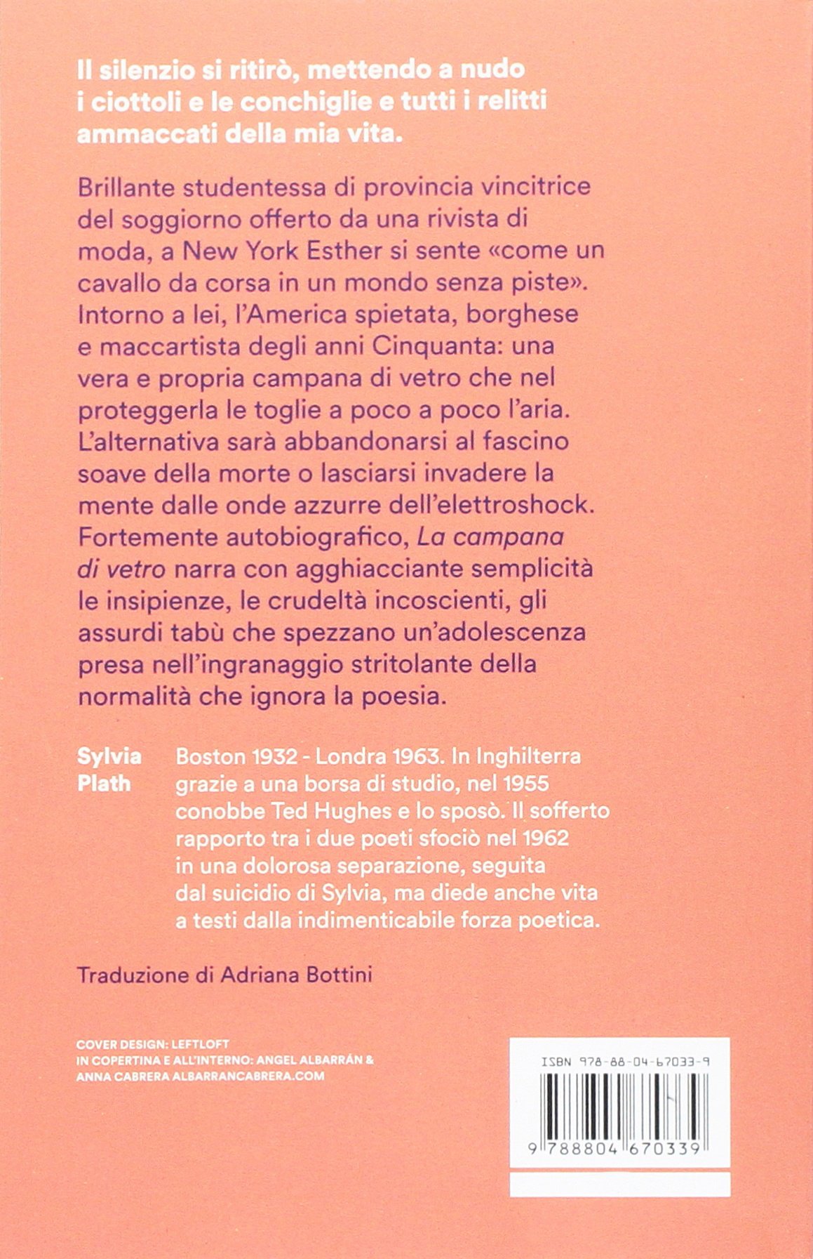 Brillante studentessa di provincia vincitrice del soggiorno offerto da una rivista di moda, a New York Esther si sente «come un cavallo da corsa in un mondo senza piste». Intorno a lei, l'America spietata, borghese e maccartista degli anni Cinquanta: una vera e propria campana di vetro che nel proteggerla le toglie a poco a poco l'aria. L'alternativa sarà abbandonarsi al fascino soave della morte o lasciarsi invadere la mente dalle onde azzurre dell'elettroshock. Fortemente autobiografico, La campana di vetro narra con agghiacciante semplicità le insipienze, le crudeltà incoscienti, gli assurdi tabù che spezzano un'adolescenza presa nell'ingranaggio stritolante della normalità che ignora la poesia. Include sei poesie da "Ariel".