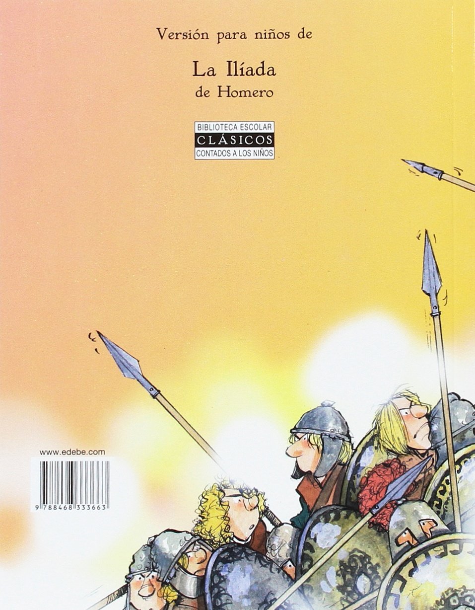 La ILÍADA es un relato que nos cuenta lo que sucedió durante las últimas semanas de la guerra de Troya, en la que se enfrentaron griegos y troyanos. La ciudad de Troya, que está en Asia Menor, se llamaba también Ilión, y por eso esta historia lleva el título de Ilíada. ¿Pero cómo empieza la Ilíada? Con la furia del más grande de los héroes griegos, Aquiles, por la ofensa que le hizo el rey Agamenón. ¡Cuánto daño iba a causar! Las bellas palabras con las que Homero cantó esa historia la han dejado impresa en la arena del tiempo. Aunque nada se sabe con certeza, parece que hacia el siglo VIII antes de Cristo, un juglar griego llamado Homero del que se dice que era ciego compuso un espléndido poema titulado la Ilíada, donde se cuentan las hazañas de Aquiles y de otros héroes en la guerra de Troya. Se dice también que Homero creó después la Odisea, una historia que narra las aventuras que vivió Odiseo Ulises desde que se marchó de Troya acabada la guerra hasta que llegó, diez años después, a su patria, Ítaca. Las dos obras fueron primero poemas orales, que se cantaban, y más tarde se escribirían. Pero lo cierto es que nada de esto es seguro, porque hay quien dice incluso que Homero no existió Basta, por tanto, que sepáis que la Ilíada es un poema maravilloso, que fue compuesto hace muchos, muchísimos años: ¡casi tres mil! La Ilíada está escrita en griego, en 15.693 versos.