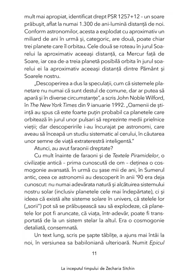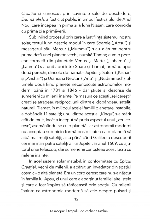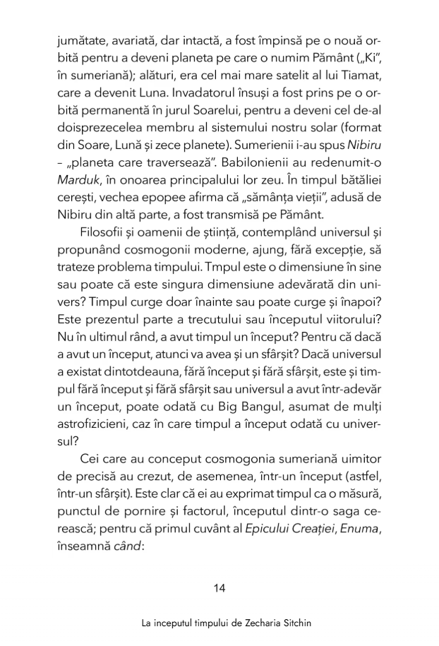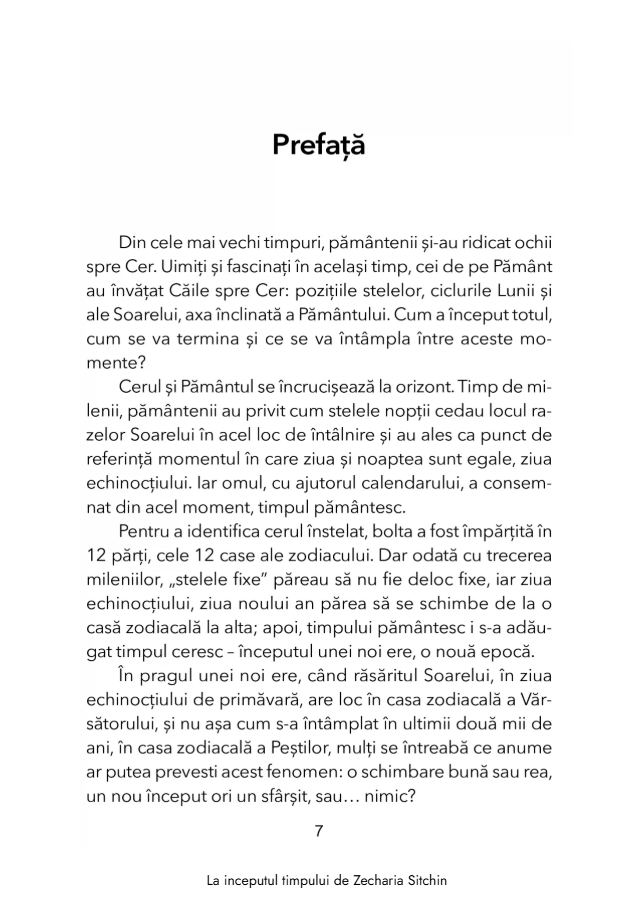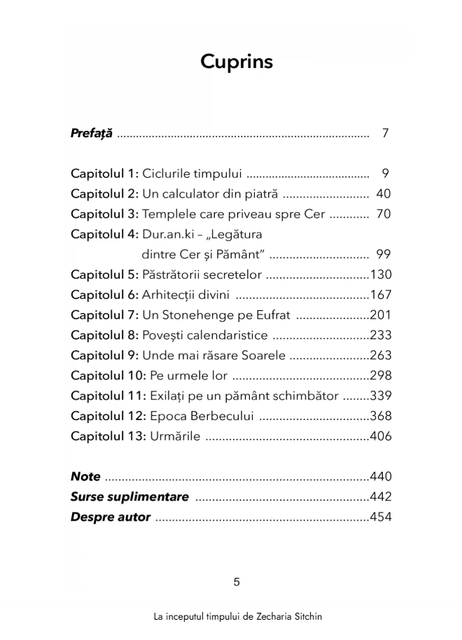 Cu aceste intrebari in minte, Zecharia Sitchin, cercetator renumit al epocilor trecute, ne duce intr-o calatorie prin consemnarile timpului in aceasta a cincea carte a seriei „Cronicile Pamantului”. Bazandu-se pe scrierile sumeriene si egiptene, pe artefacte vechi de milenii si pe arhitectura sacra, din vechea Mesopotamie pana la civilizatiile precolumbiene din cele doua Americi, acest savant celebru ofera perspective uluitoare asupra originilor calendarului, astronomiei si astrologiei. Ii duce pe cititori in punctul culminant, in jurul anului 2100 i.Hr., cand Marduk, principalul zeu babilonian, a dobandit suprematia pe Pamant si a proclamat noua era a Berbecului – dupa care societatea, religia, stiinta si statutul femeilor nu au mai fost niciodata la fel.