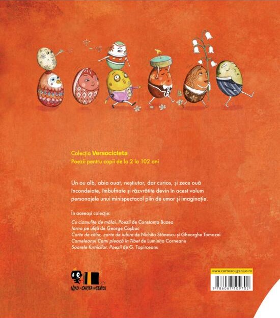 Un ou alb, abia ouat, neştiutor, dar curios, și zece ouă încondeiate, îmbufnate şi răzvrătite devin în acest volum personajele unui minispectacol plin de umor și imaginație.